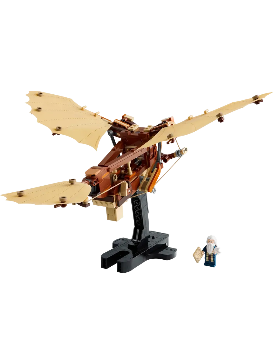 В комплекте — подставка для эффектной демонстрации модели и минифигурка самого Леонардо да Винчи с пером и чертежом в руках, словно он только что закончил свой следующий великий проект.