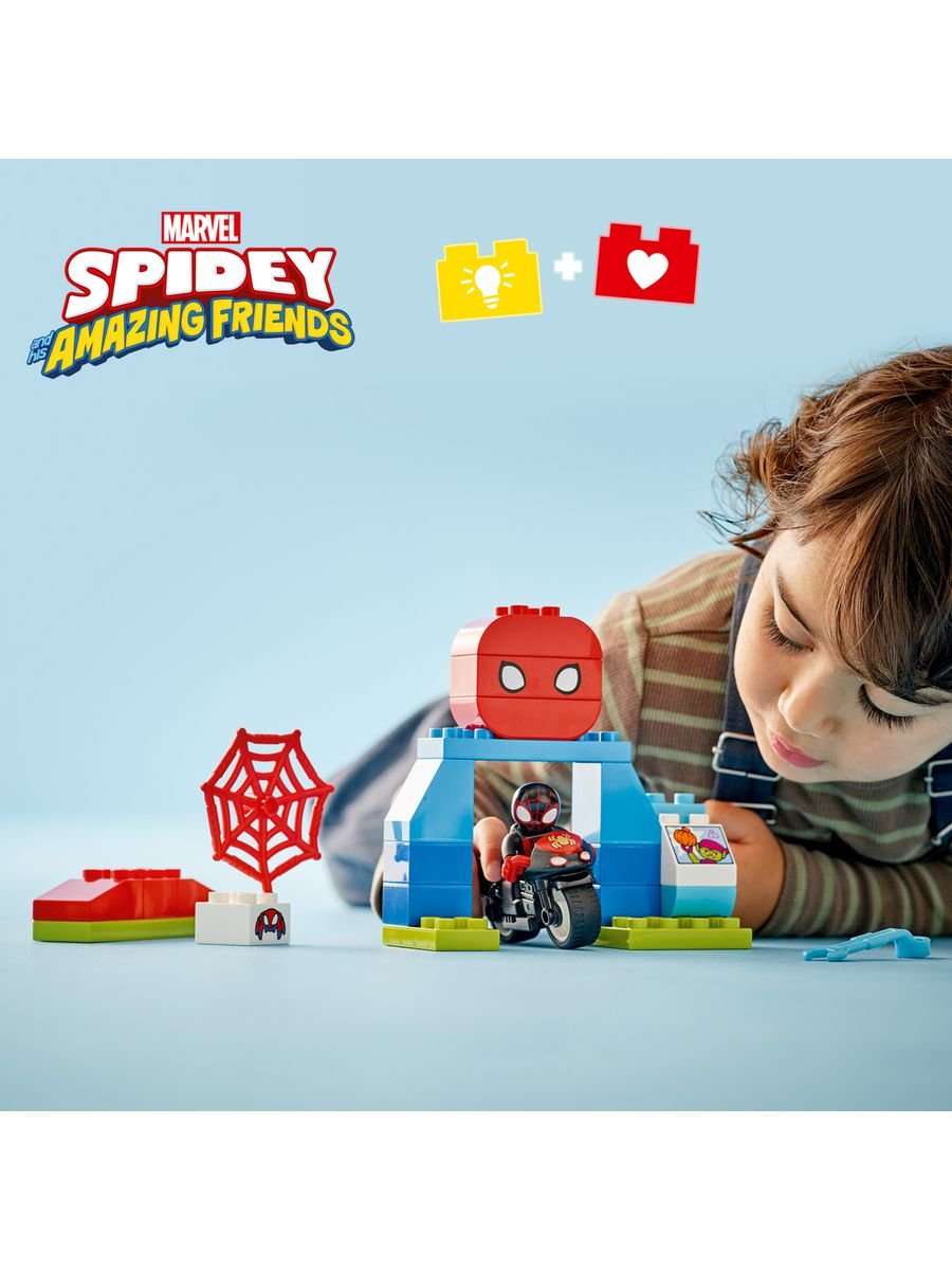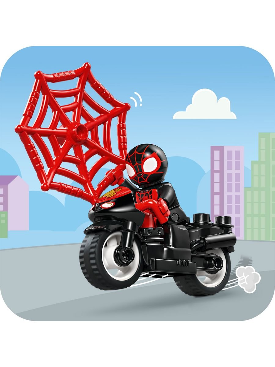 Конструктор LEGO Duplo «Мотоциклетное приключение Спина» 10424 — это увлекательный игровой набор для самых маленьких поклонников Человека-паука и его друзей из мультсериала Disney+ «Паучок и его удивительные друзья». Этот набор создан для детей от 2 лет и позволит им воссоздавать любимые сцены или придумывать собственные супергеройские миссии. Спин отправляется на своем черном мотоцикле в захватывающую поездку, где его ждут прыжки с трамплина, ловля кубиков с помощью паутины и другие испытания.