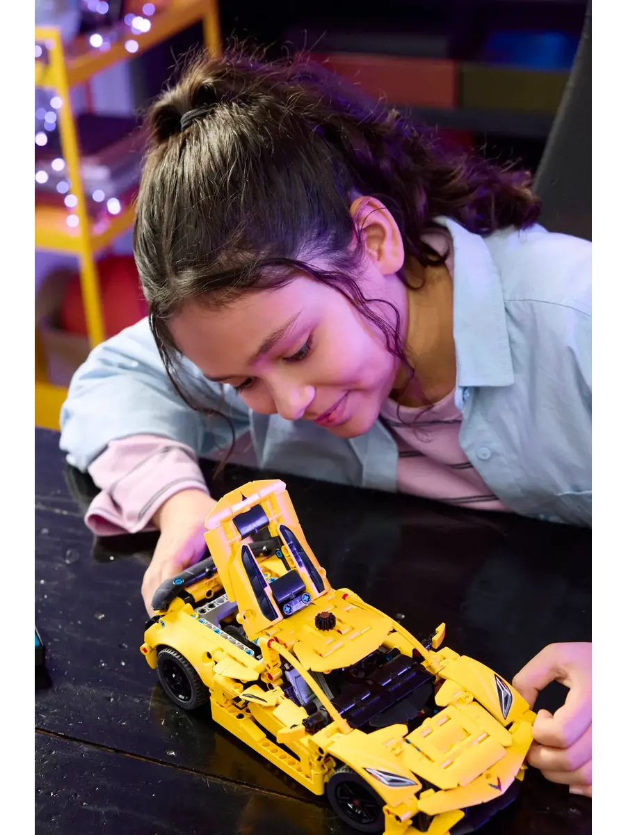 Конструктор включает 732 детали, а готовая модель Corvette Stingray достигает 8 см в высоту, 27 см в длину и 14 см в ширину. Этот яркий и функциональный автомобиль обязательно понравится юным строителям и поклонникам спортивных машин.