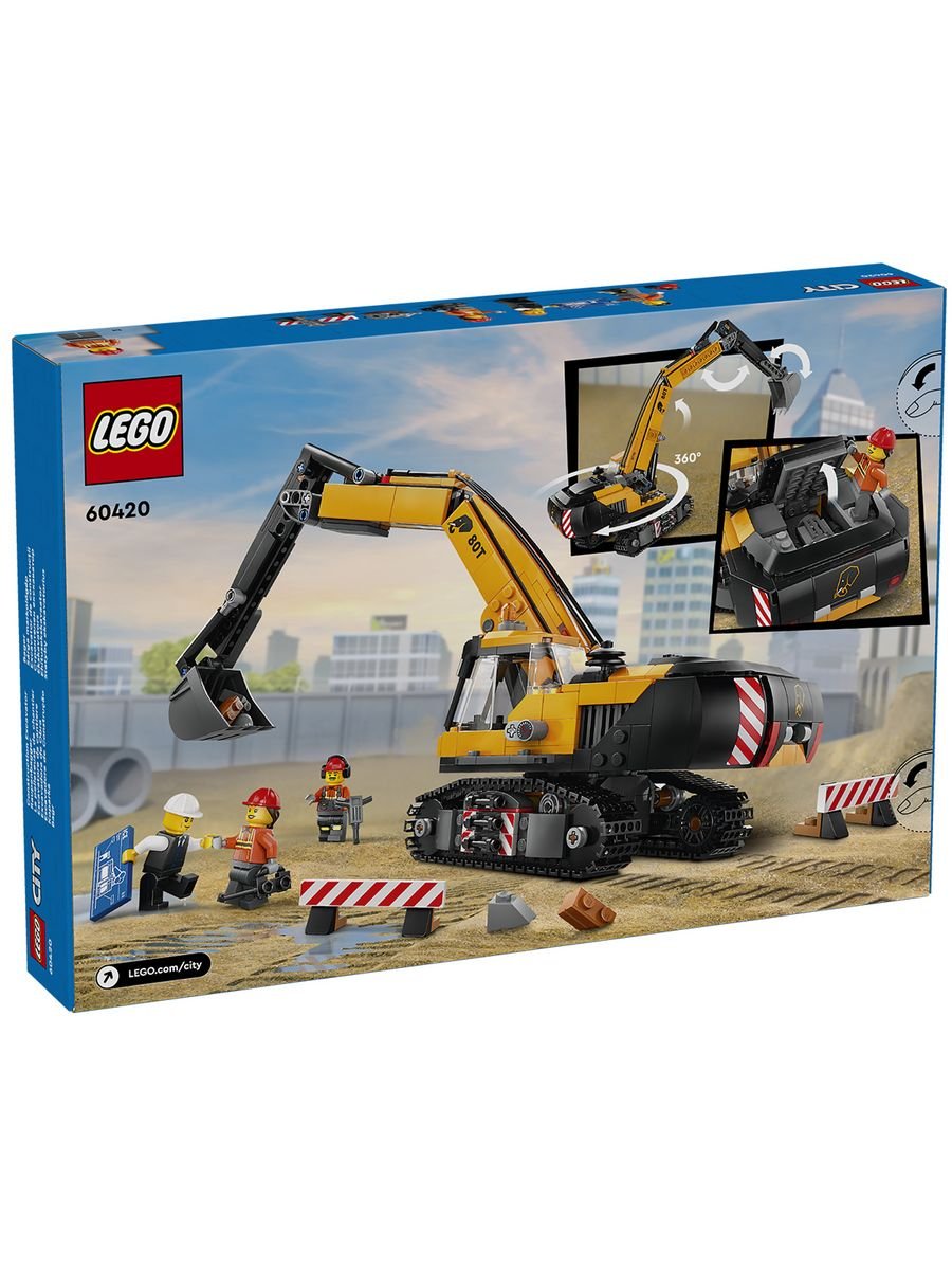 LEGO City Желтый строительный экскаватор 60420 — мощная техника для больших проектов!