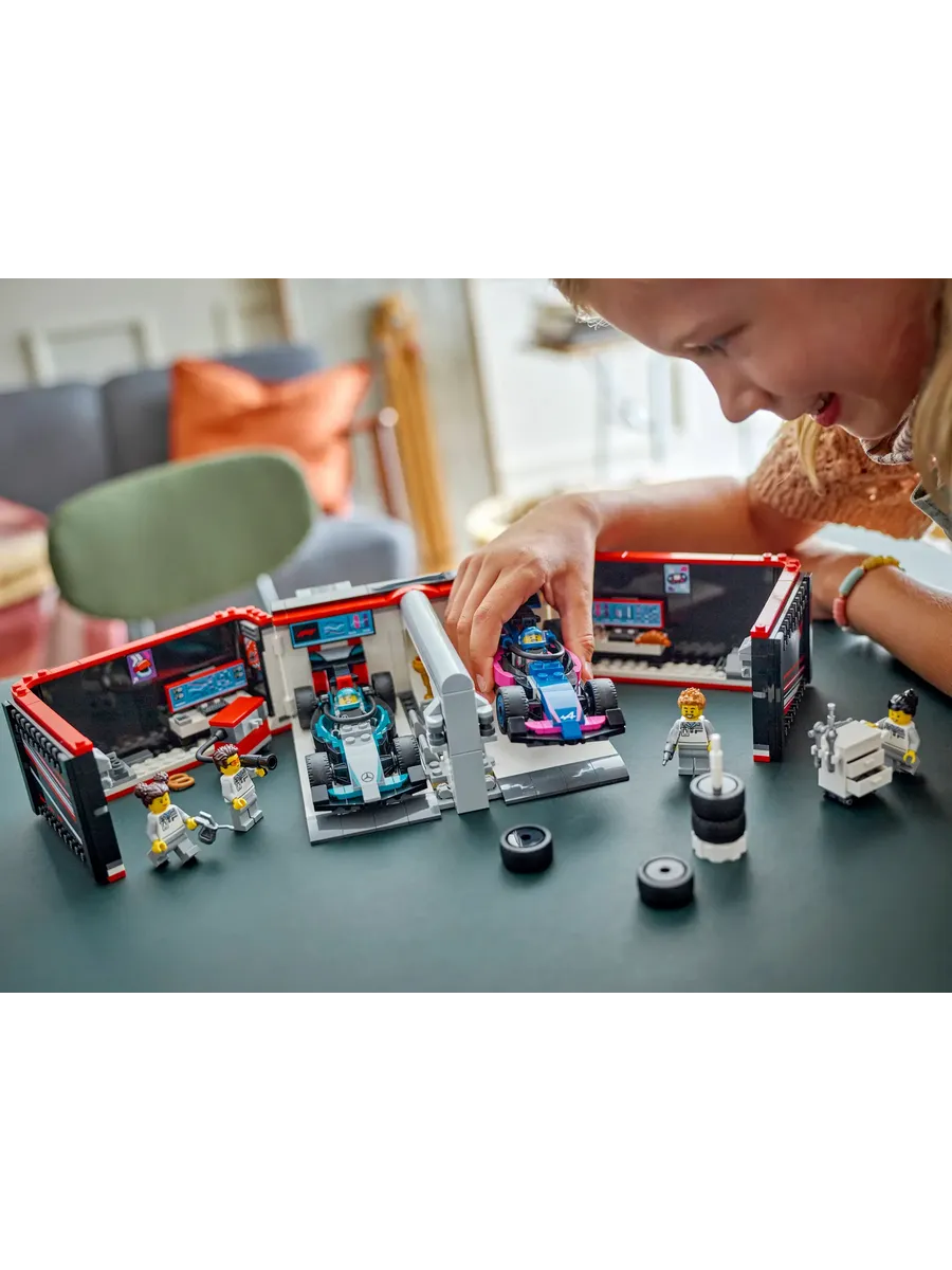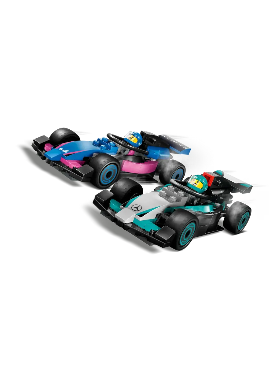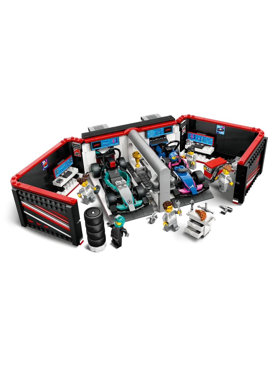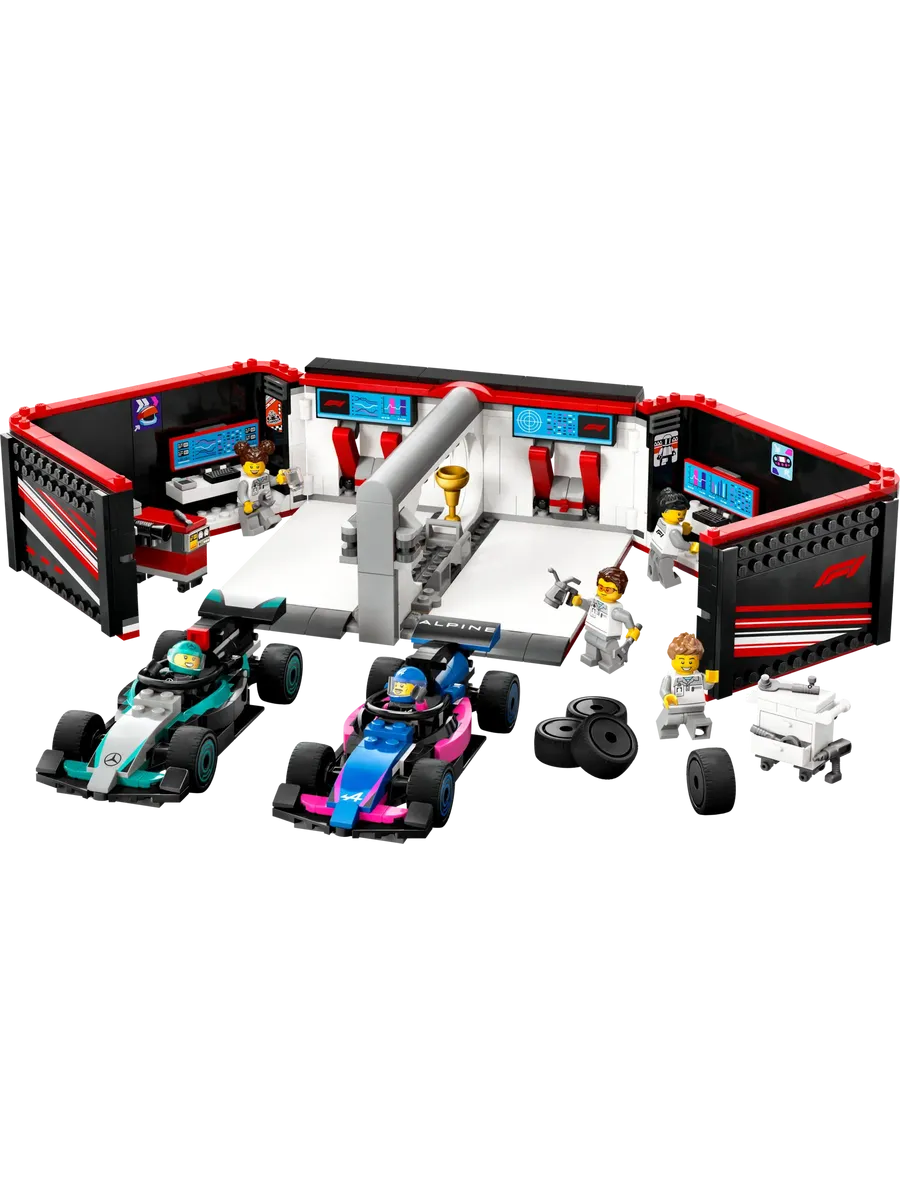 С этим крутым игровым набором LEGO City дети отправятся в мир профессионального автоспорта, где рев моторов и азарт гонки — часть каждого дня. Гараж F1 с гоночными болидами Mercedes-AMG и Alpine ждет своих юных механиков и пилотов!