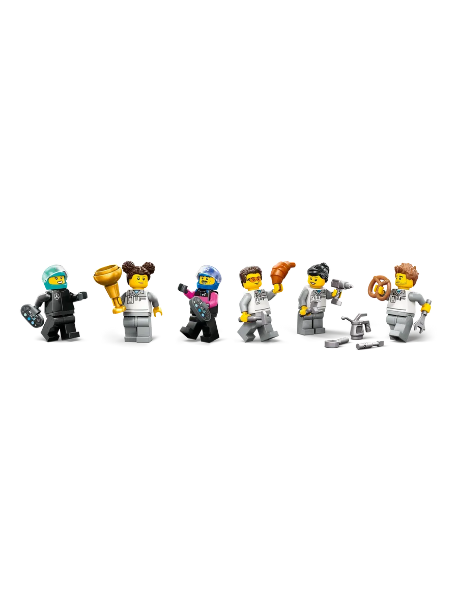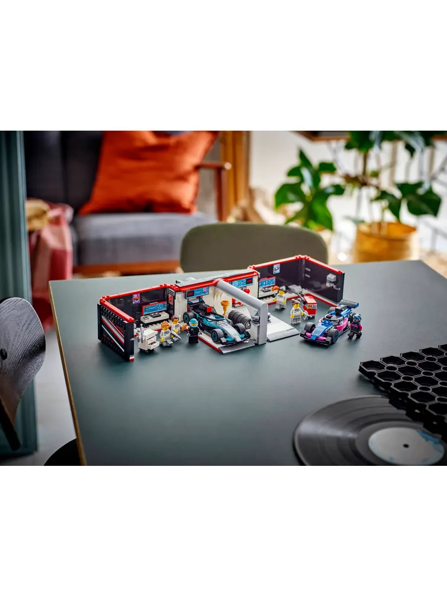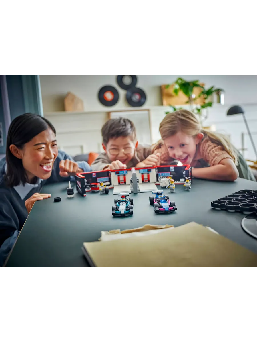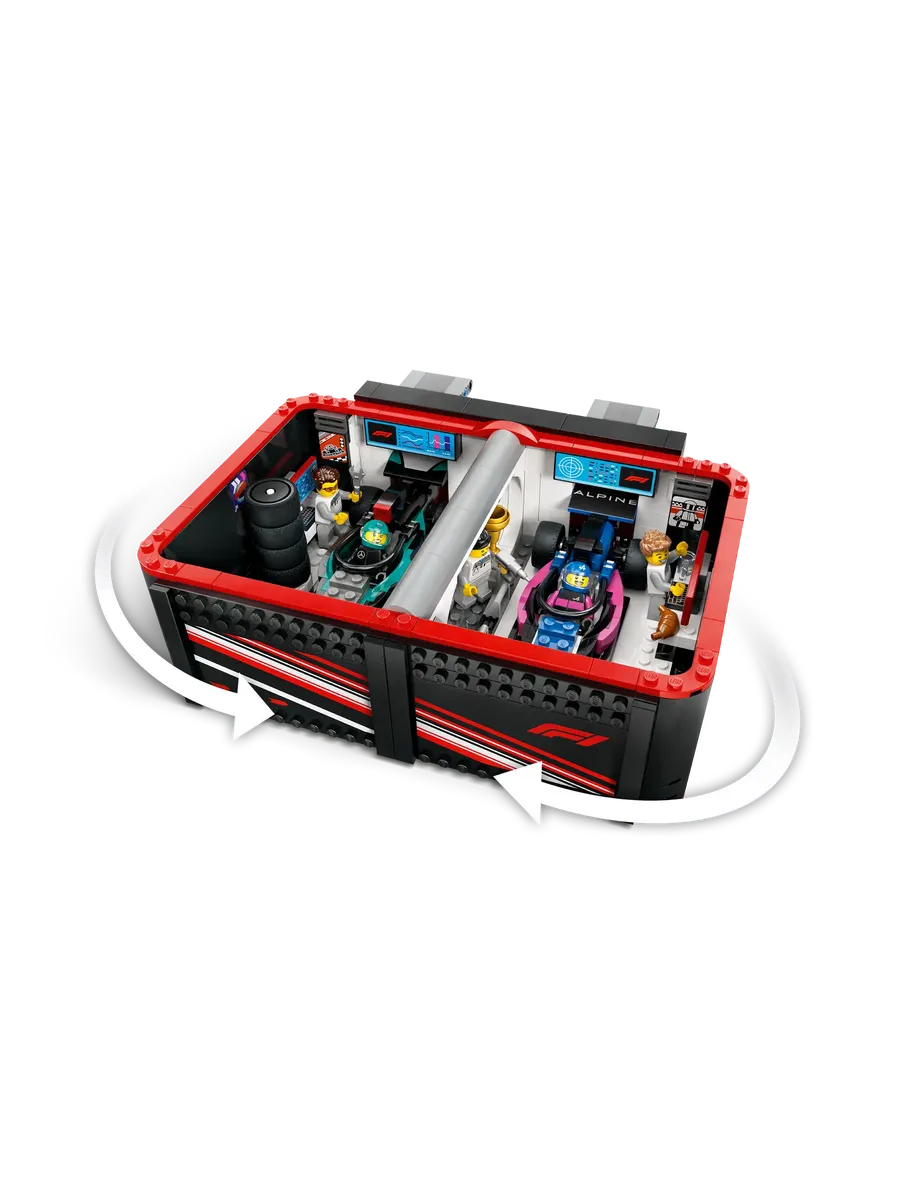 С этим крутым игровым набором LEGO City дети отправятся в мир профессионального автоспорта, где рев моторов и азарт гонки — часть каждого дня. Гараж F1 с гоночными болидами Mercedes-AMG и Alpine ждет своих юных механиков и пилотов!