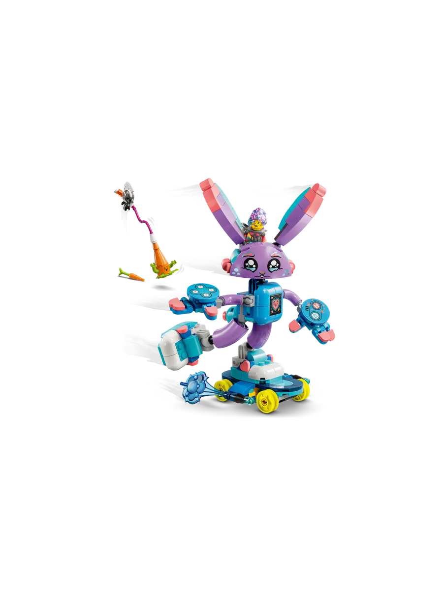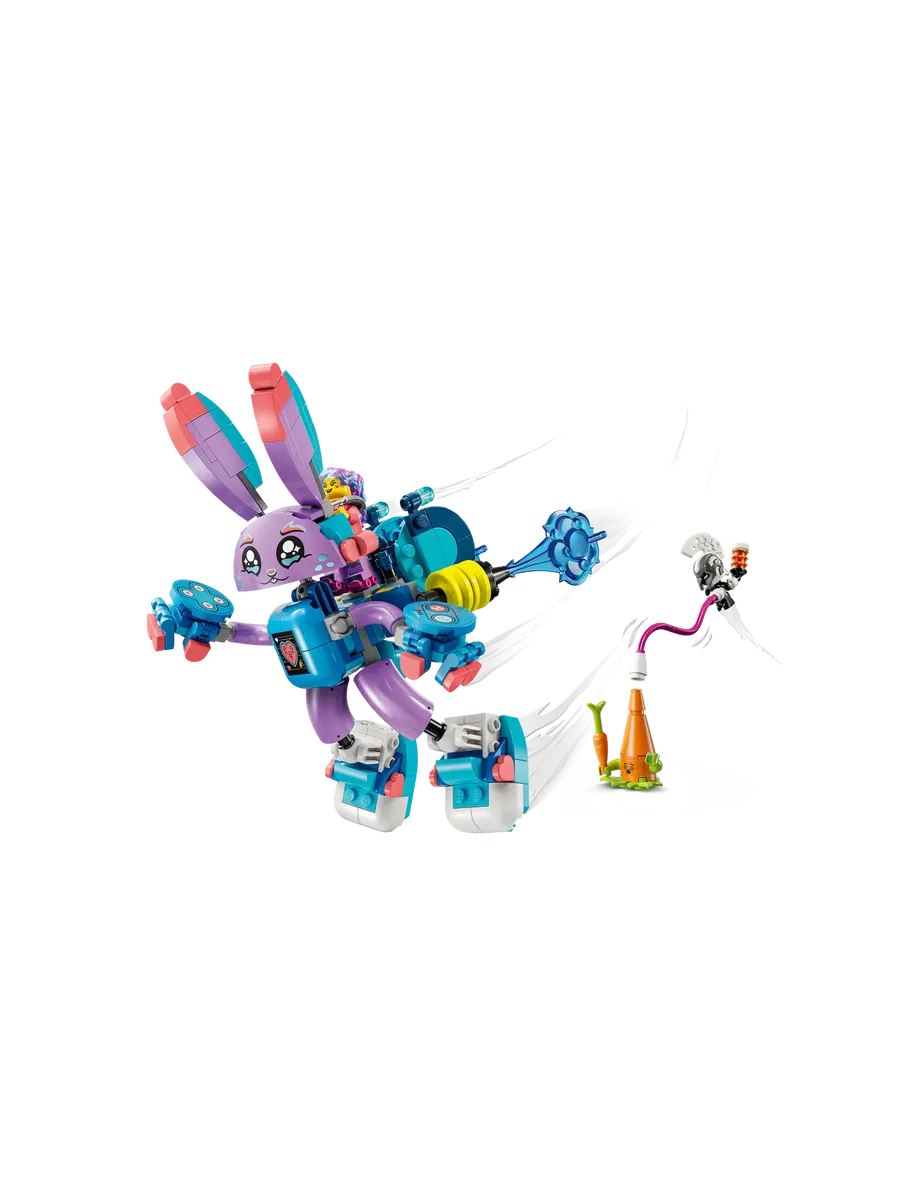 Минифигурка Иззи дополняет набор, оживляя сюжет. Она крепится на спину Банчуро, чтобы вместе с ним мчаться спасать морковку-дримлинга от зловредного киберлинга — врага из цифрового мира.