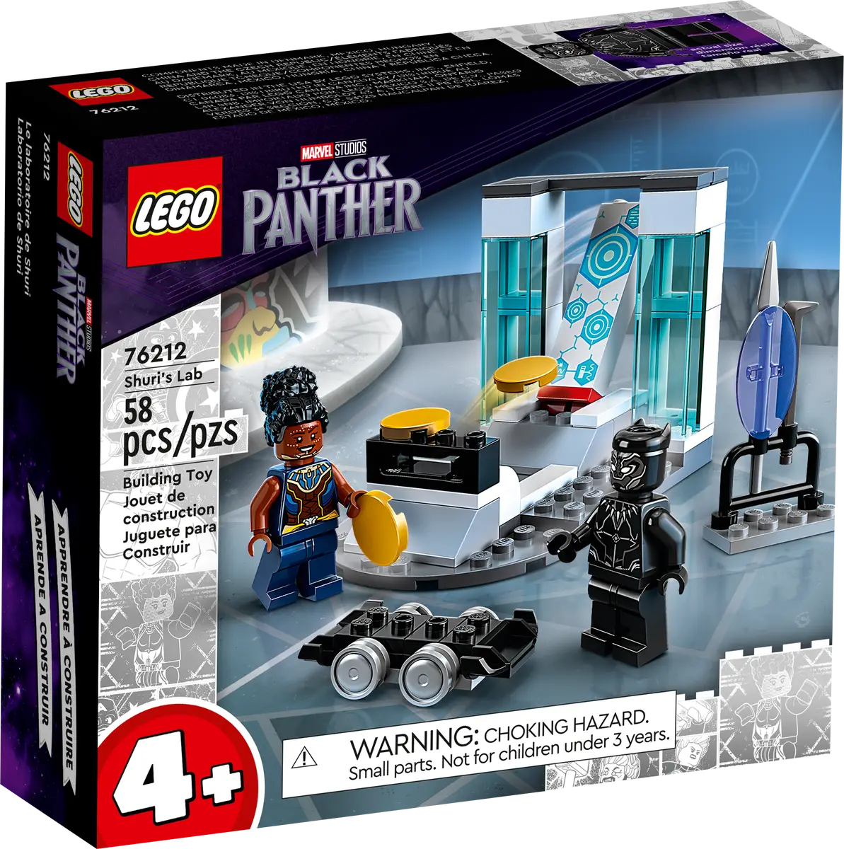 Погрузитесь в мир супергероев вместе с LEGO Лабораторией Шури (76212) — ярким и увлекательным набором для детей от 4 лет. В этой компактной лаборатории Шури вместе с Черной Пантерой готовят новые изобретения и тренируются с дисковым шутером. Черная Пантера мчится на своем ховерборде, уворачиваясь от оружейного стенда, а малыши учатся строить и играть благодаря быстрому старту и понятным иллюстрированным инструкциям.