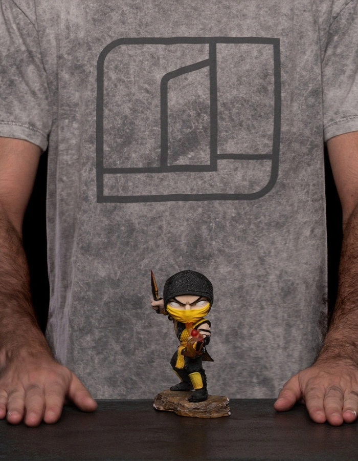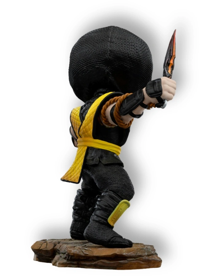 Фигурка выполнена в фирменной серии MiniCo, которая сочетает компактный формат и яркий стилизованный дизайн. Скорпион изображён в динамичной позе, готовый атаковать противника своим кунаем на цепи. В его образе подчеркнуты ключевые элементы: жёлто-чёрный костюм, мистические глаза и эффект огня, придающий фигурке дополнительную атмосферу. Особый акцент сделан на деталях — от текстуры костюма до огненных эффектов, создающих ощущение движения и силы.