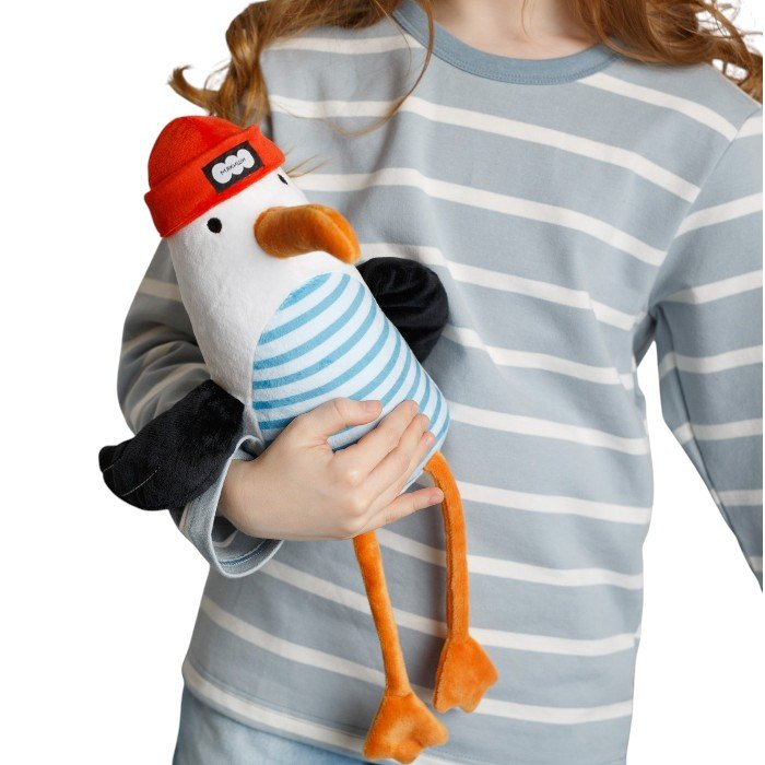 Эта чайка словно приглашает малыша в воображаемое путешествие по волнам. С ней так легко сочинять истории, играть в морские сказки или просто уютно заснуть под её «крылом». Она становится не только игрушкой, но и эмоциональным якорем — вещью, с которой ассоциируется спокойствие и радость.