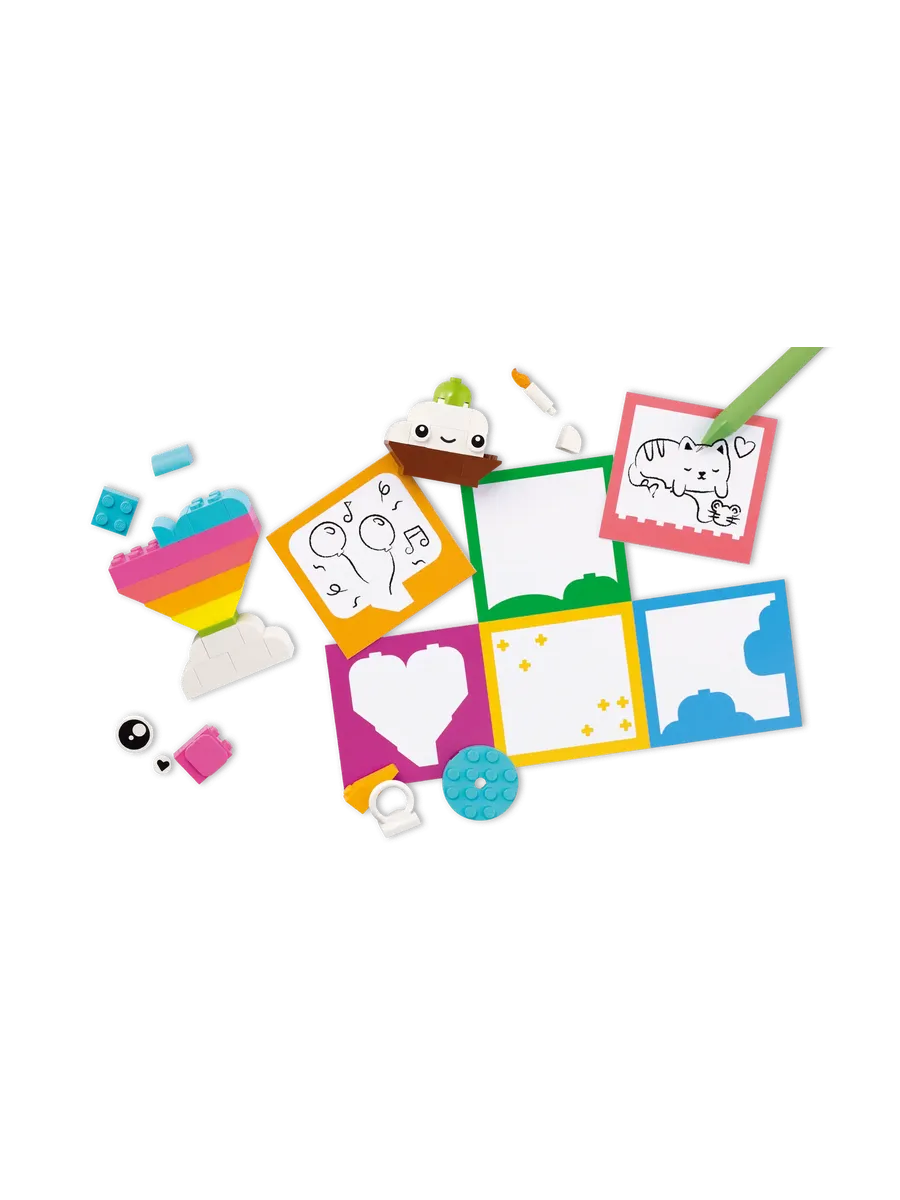 Функциональность тоже на месте! Домик, краб и обезьяна могут хранить мелочи вроде карандаша или зубной щётки. Цветок, фотоаппарат, маркер, сердце и кактус оснащены зажимами, чтобы держать записки, открытки или фотографии — даже цветная бумага уже в комплекте!