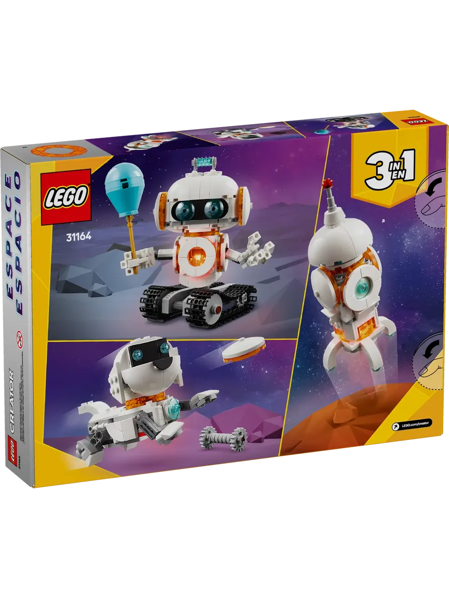 Отправляйтесь навстречу звёздным мирам с набором LEGO Creator 3 в 1 «Космический робот» (31164)! Этот захватывающий игровой комплект для мальчиков и девочек от 8 лет позволит воплотить фантастические приключения в космосе с помощью одной коробки и трёх разных моделей.