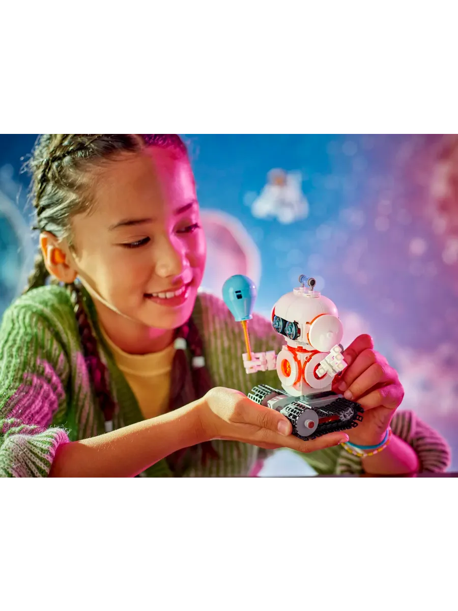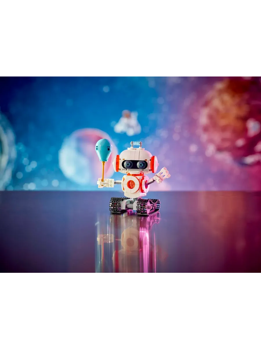 Собранный робот достигает высоты около 13 см. Набор из 281 детали станет отличным подарком для любителей космических приключений, которым хочется строить, играть и мечтать о далеких галактиках.