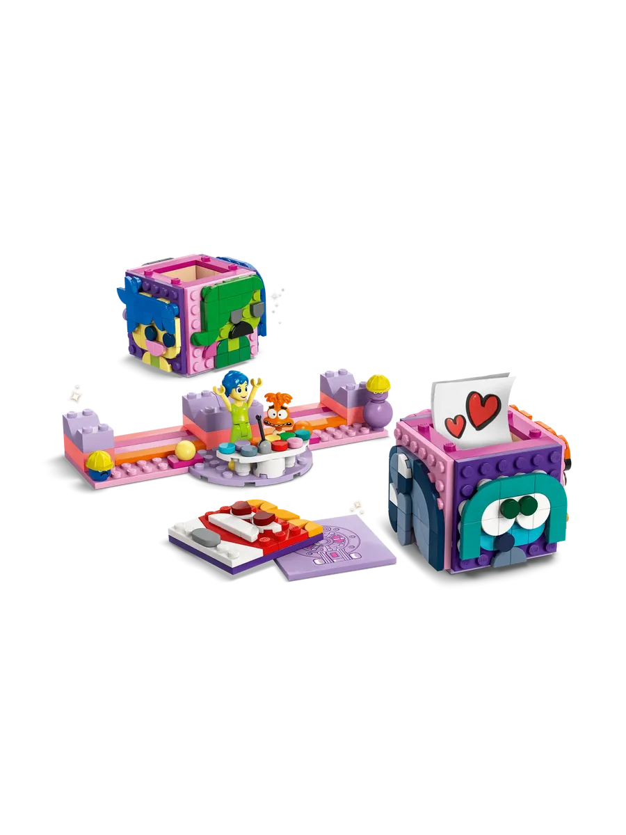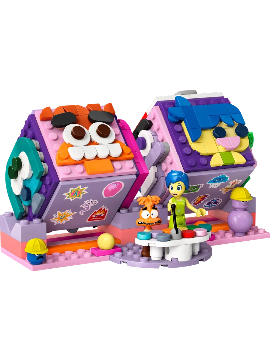 В набор входят два сборных кубика, каждый из которых можно украсить с помощью девяти сменных панелей настроения. Кубики можно расставлять по-разному, отражая свои чувства, и даже хранить в них маленькие сокровища. Подставка для кубиков напоминает пульт управления из фильма, а забавные фигурки Формана и Марджи — рабочих из центра разума — добавят игре атмосферности.