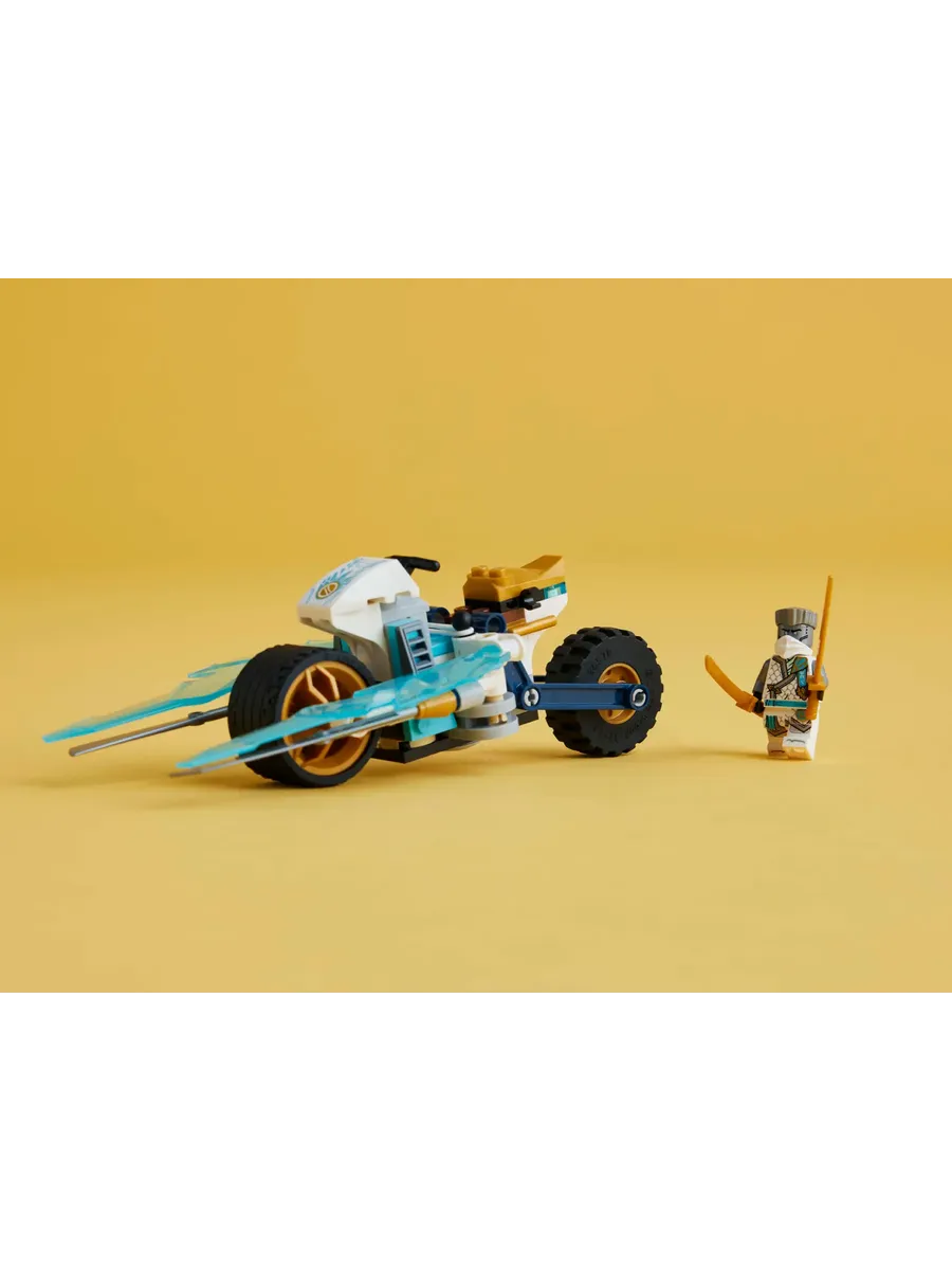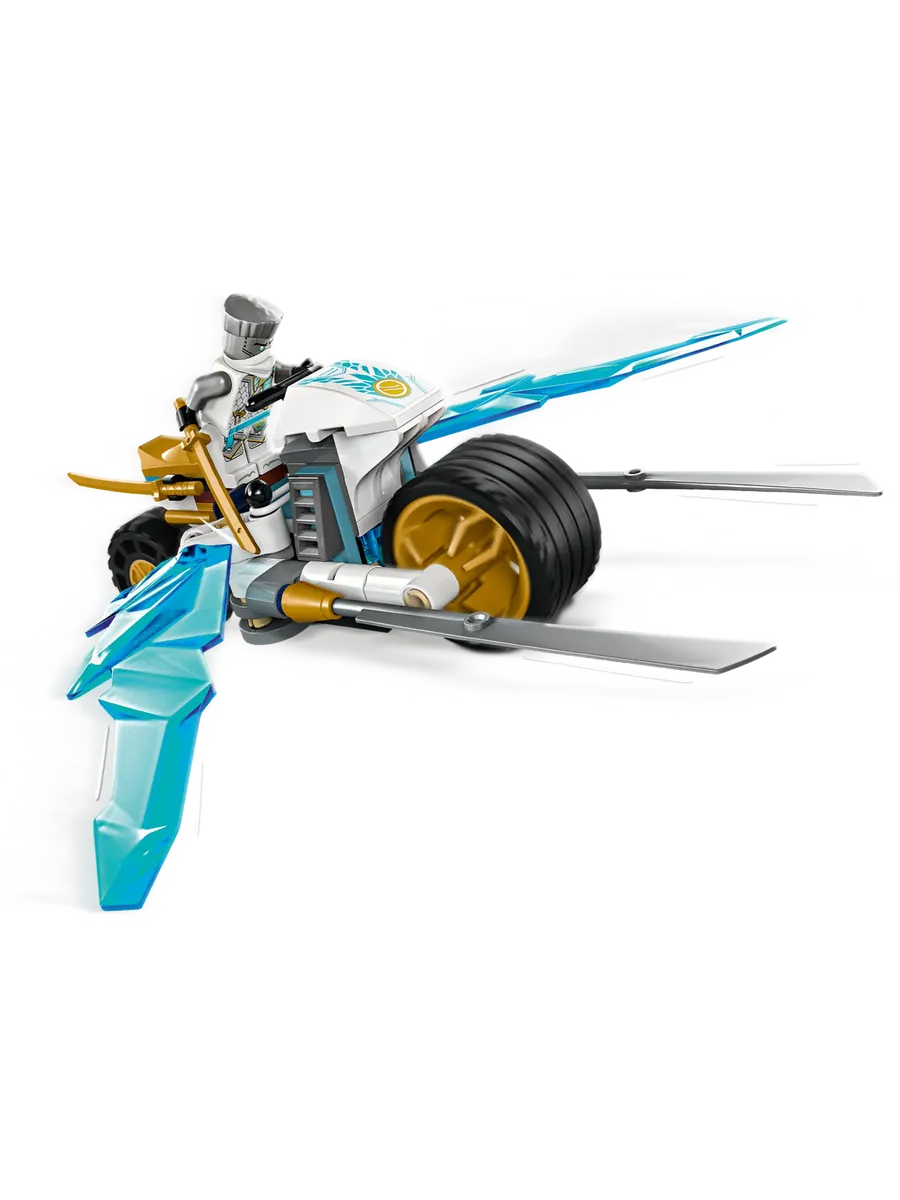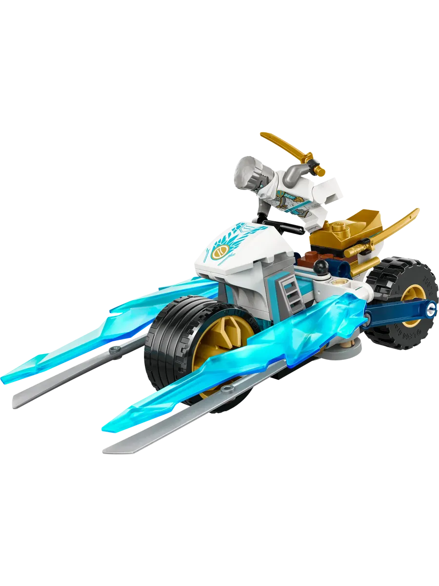 Оригинальный конструктор ЛЕГО предназначенный для мальчиков и девочек в возрасте от 7 лет, Игрушечный «Ледяной мотоцикл Зейна» NINJAGO позволяет т разыгрывать стремительные приключения из второго сезона сериала «Ниндзяго: Восстание драконов». В этом детском наборе с ниндзя есть мотоцикл NINJAGO с подвижными колесами, золотыми клинками и подвеской для заднего колеса. Когда дети нажимают на колесо, с обеих сторон раскладываются крутые ледяные лезвия в режиме атаки.