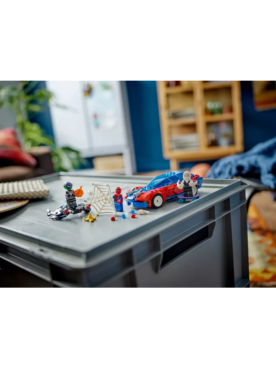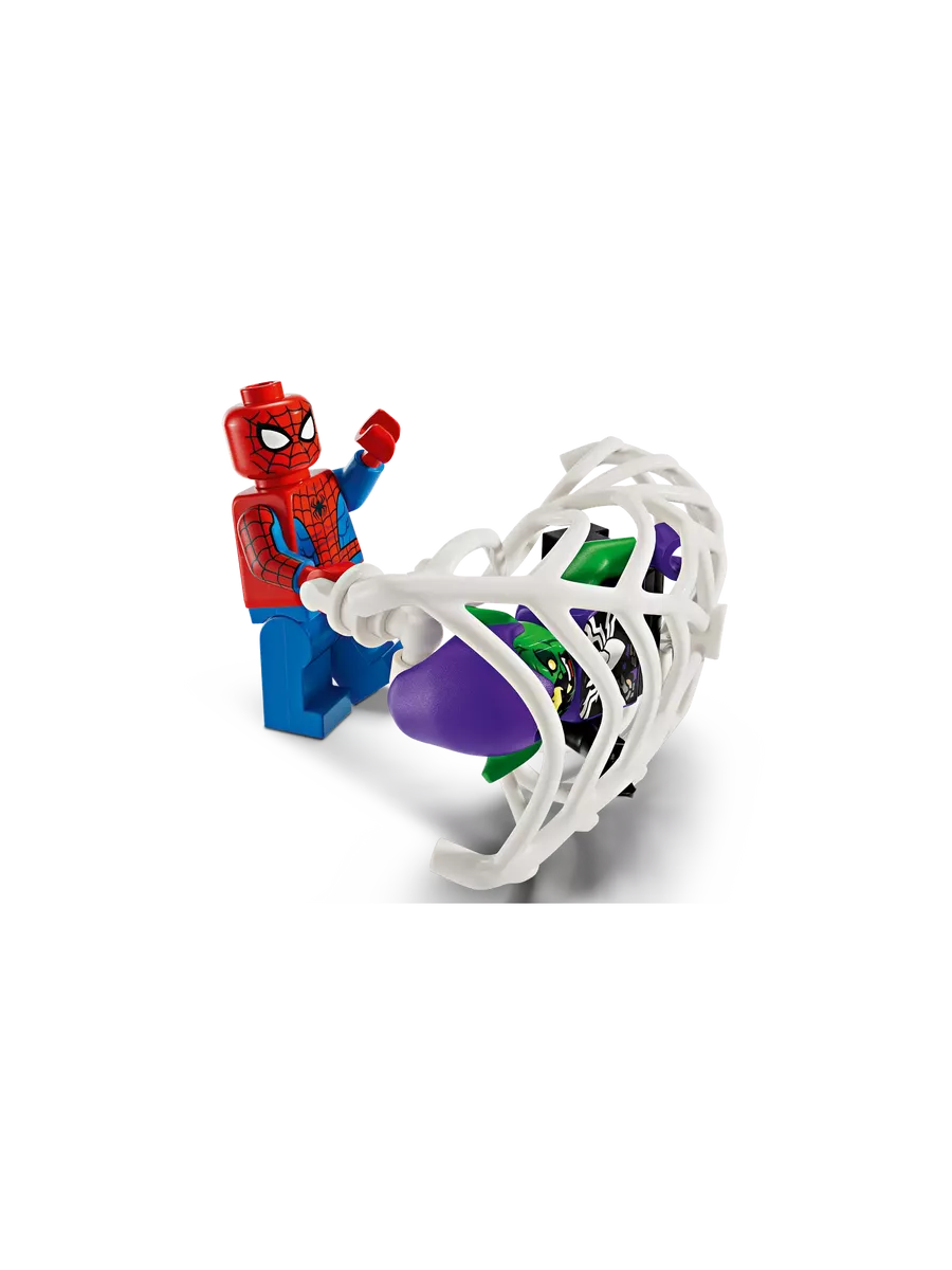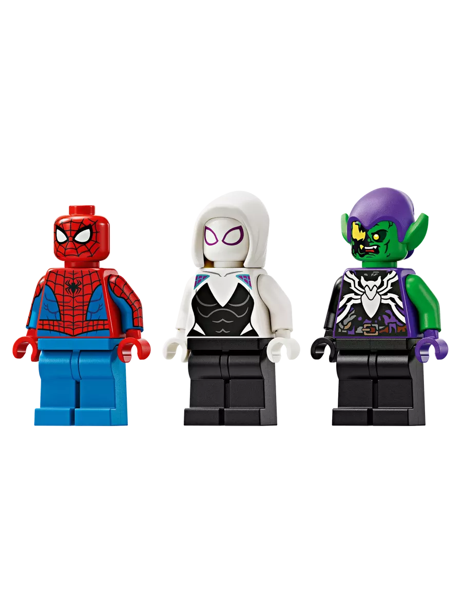 В этом наборе вас ждут три минифигурки — Человек-паук, Паук-призрак и Веномизированный Зеленый Гоблин. Каждый герой вооружен по последнему слову супергеройской моды!