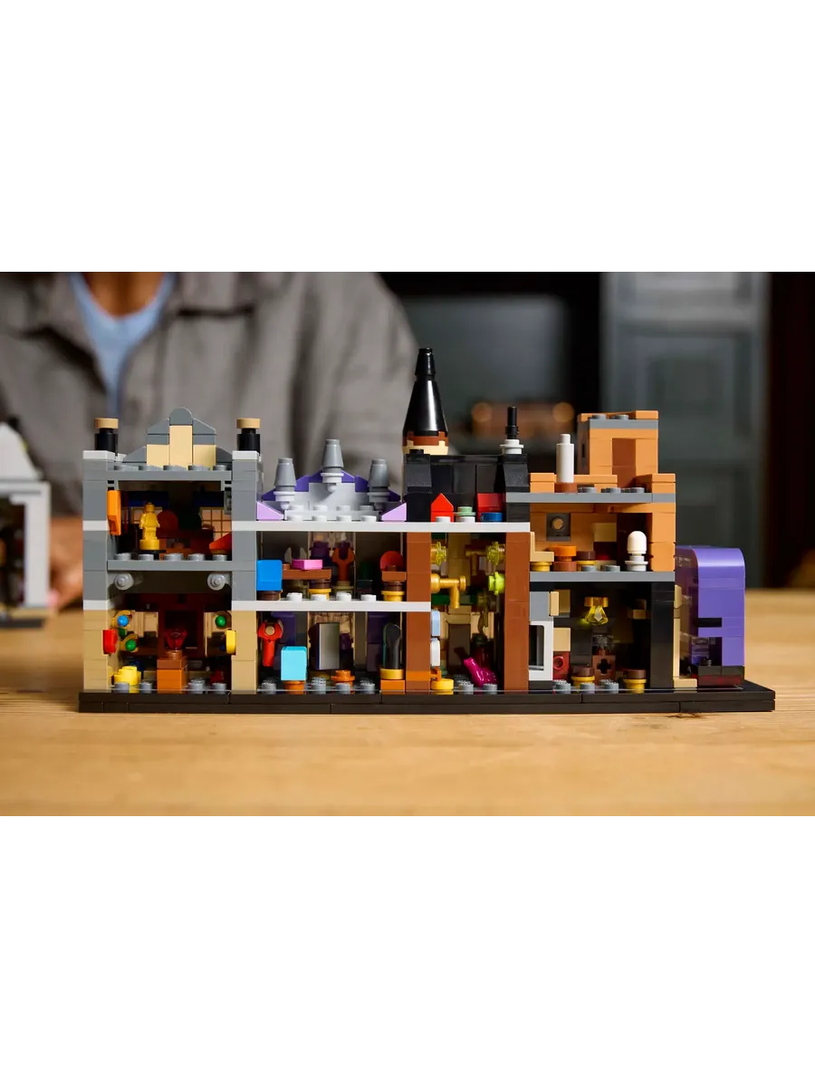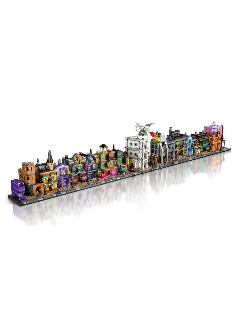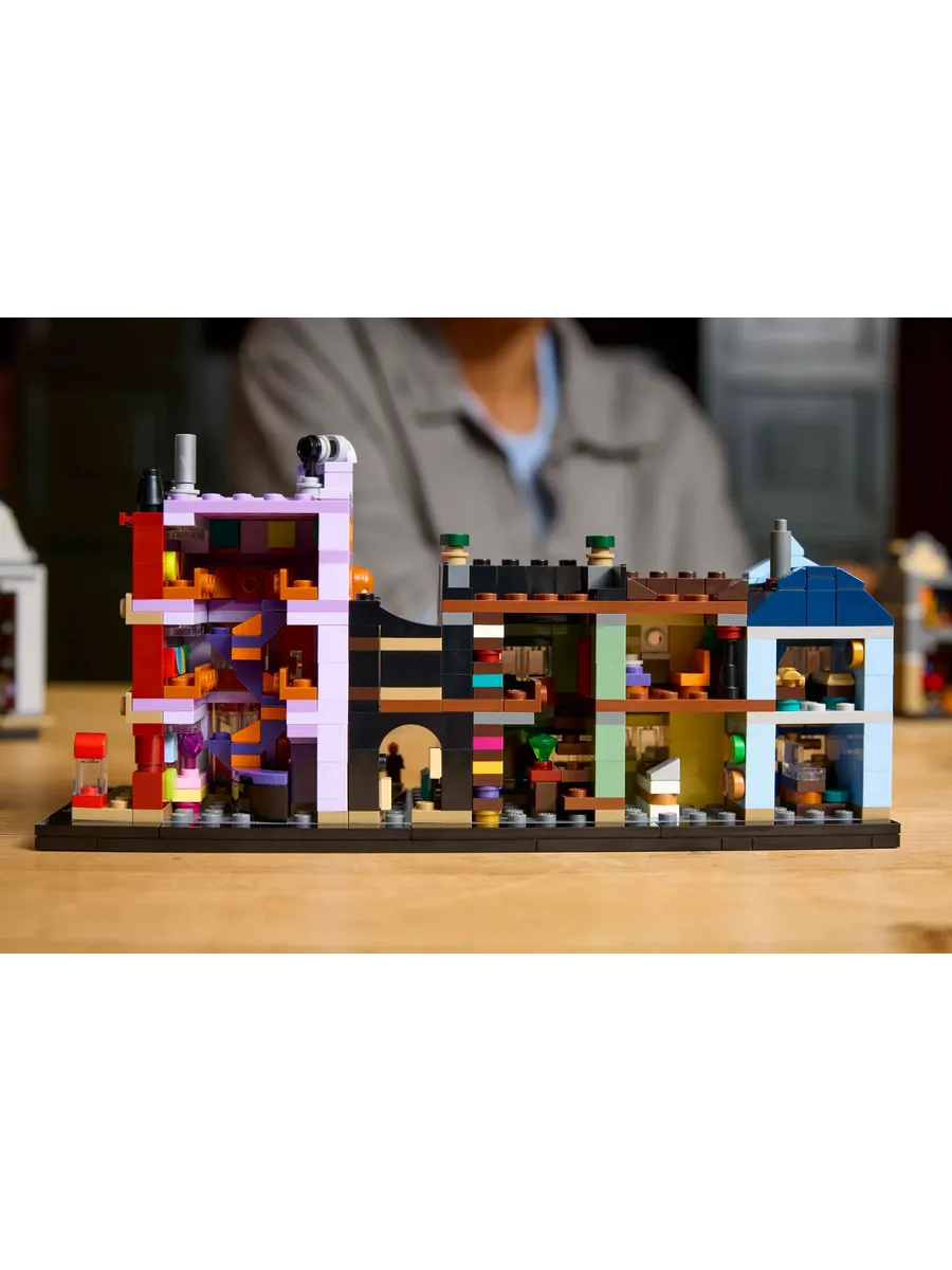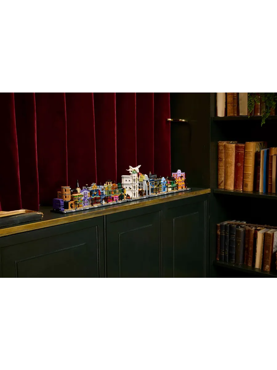 Перенеситесь в мир колдовства с этой детализированной выставочной моделью LEGO Harry Potter в миниатюрном масштабе, изображающей волшебные лавки Косого переулка (76444). Набор предлагает взрослым поклонникам магических приключений Гарри Поттера воссоздать из кубиков LEGO знаменитые заведения в Косом переулке: «Всевозможные волшебные вредилки», кафе-мороженое Флориана Фортескью, лавку Олливандера, аптеку Малпеппера, а также волшебный банк «Гринготтс», «Дырявый котел» и редакцию «Ежедневного пророка». У каждого из зданий мгновенно узнаваемые детали экстерьера и замечательные сюрпризы и пасхалки внутри. Эта волшебная модель для демонстрации станет ярким украшением комнаты. Выставьте ее как двустороннюю улицу, как один длинный ряд зданий или разделите на пять частей — так каждую можно будет рассмотреть поближе. Добавьте 12 уникальных микрофигурок LEGO Harry Potter и автобус «Ночной рыцарь», чтобы вызвать воспоминания о классических сценах. Этот набор для сборки в миниатюрном масштабе входит в серию наборов LEGO для взрослых и станет отличным подарком для вас или для других поклонников Гарри Поттера.