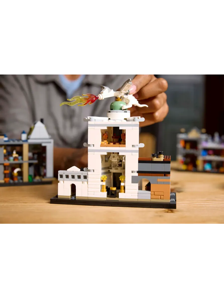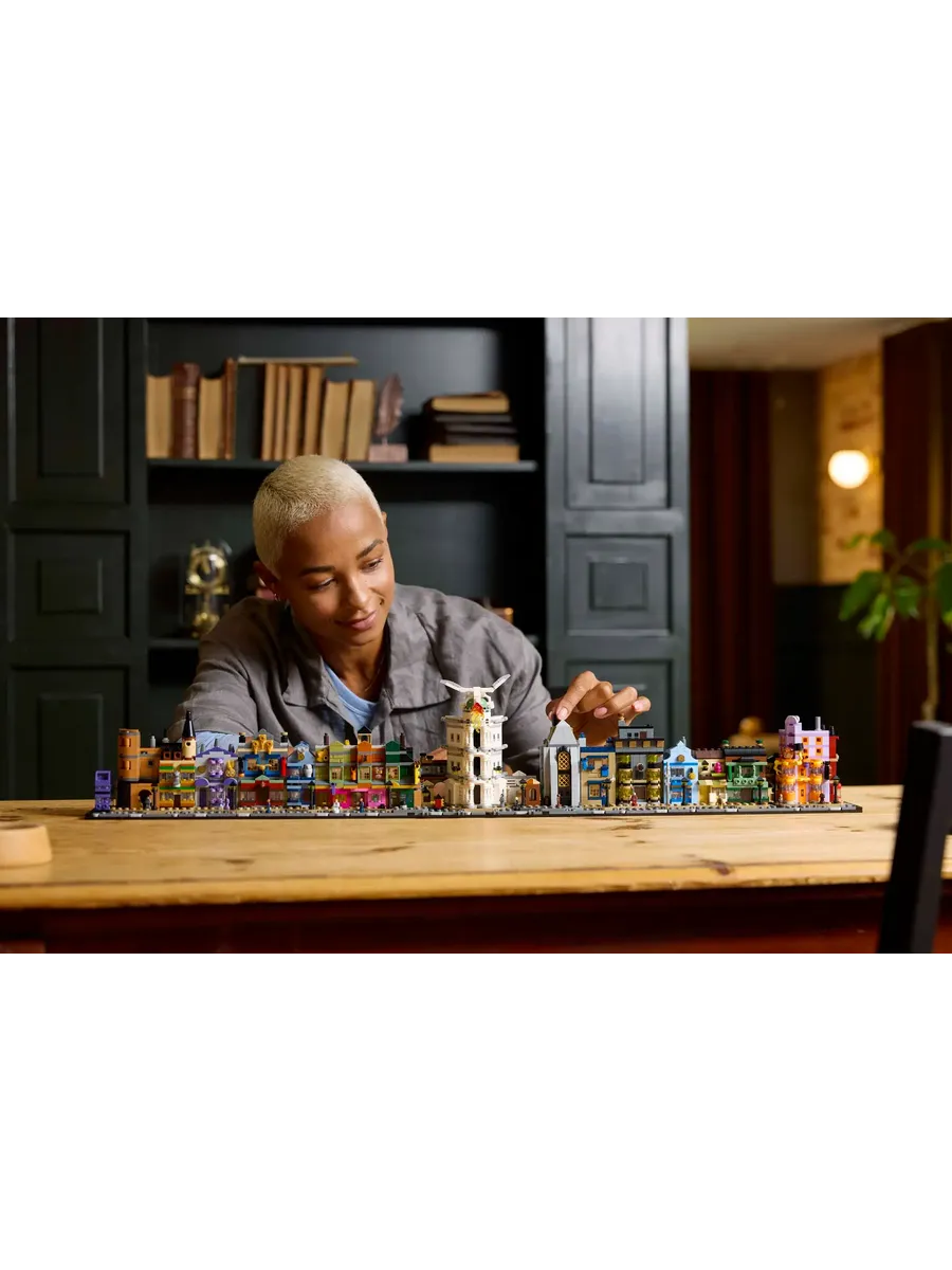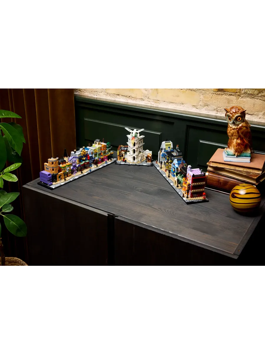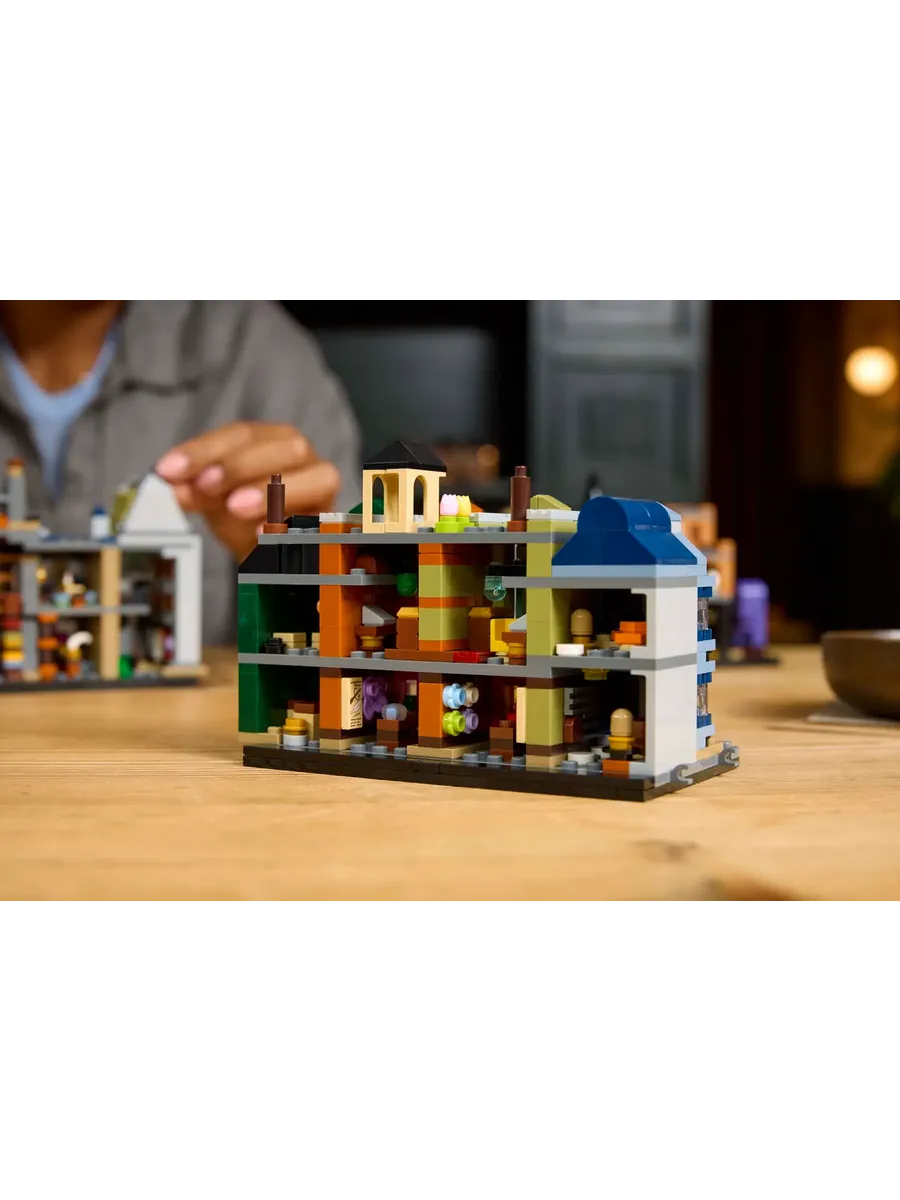 Перенеситесь в мир колдовства с этой детализированной выставочной моделью LEGO Harry Potter в миниатюрном масштабе, изображающей волшебные лавки Косого переулка (76444). Набор предлагает взрослым поклонникам магических приключений Гарри Поттера воссоздать из кубиков LEGO знаменитые заведения в Косом переулке: «Всевозможные волшебные вредилки», кафе-мороженое Флориана Фортескью, лавку Олливандера, аптеку Малпеппера, а также волшебный банк «Гринготтс», «Дырявый котел» и редакцию «Ежедневного пророка». У каждого из зданий мгновенно узнаваемые детали экстерьера и замечательные сюрпризы и пасхалки внутри. Эта волшебная модель для демонстрации станет ярким украшением комнаты. Выставьте ее как двустороннюю улицу, как один длинный ряд зданий или разделите на пять частей — так каждую можно будет рассмотреть поближе. Добавьте 12 уникальных микрофигурок LEGO Harry Potter и автобус «Ночной рыцарь», чтобы вызвать воспоминания о классических сценах. Этот набор для сборки в миниатюрном масштабе входит в серию наборов LEGO для взрослых и станет отличным подарком для вас или для других поклонников Гарри Поттера.