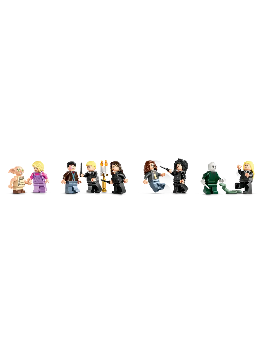 В наборе — целых девять минифигурок: Гарри Поттер, Гермиона Грейнджер, Драко Малфой, Нарцисса Малфой, Люциус Малфой, Беллатриса Лестрейндж, Луна Лавгуд, сам Волан-де-Морт и, конечно же, Добби, который принес своим друзьям спасение. А фигурка змееподобной Нагайны придаёт сценам ещё больше зловещей атмосферы.