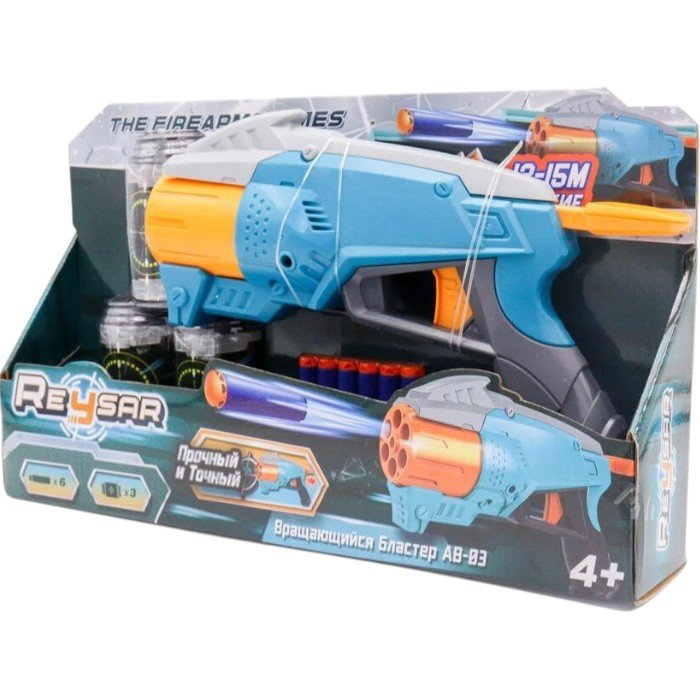 Главная особенность — вращающийся барабан, который создаёт ощущение настоящего оружия из фантастических фильмов. Механизм вращения активируется легко и плавно, что делает процесс стрельбы зрелищным и зрительно эффектным. Бластер удобно лежит в руках, а его конструкция позволяет вести активную игру как в помещении, так и на свежем воздухе.
