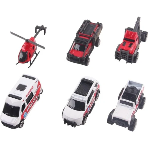 • 6 металлических машинок с пластиковыми деталями для прочности и реализма