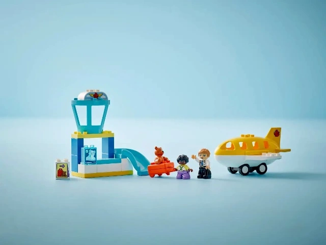 LEGO DUPLO «Первый раз в аэропорту» — захватывающее путешествие начинается здесь! Представьте, как малыш собирает чемодан, подходит к стойке регистрации и проходит досмотр, а потом с радостным волнением поднимается на борт самолёта. С этим набором дети от 2 лет отправятся в своё первое «воздушное» приключение, погрузившись в увлекательную игру, которая знакомит с атмосферой аэропорта и полёта.