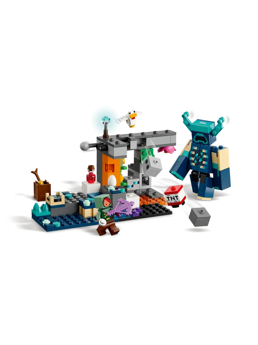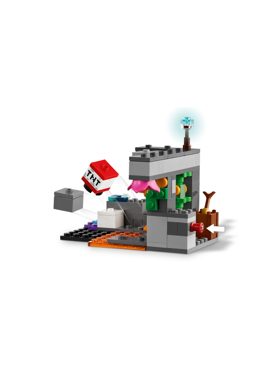 Рейнджер-одиночка спускается в пещеру, полную ценных ресурсов и скрытых ловушек. В наборе вы найдёте минифигурку Бесшумного Рейнджера, курицу, зелье, восстанавливающую здоровье золотую морковь и даже динамит, с помощью которого можно вручную вызвать взрыв. А ещё — опасный механизм с падающим камнем. Главная угроза здесь — устрашающий Смотритель с подвижной головой, руками и ногами. Только самый отважный игрок решится подойти ближе!