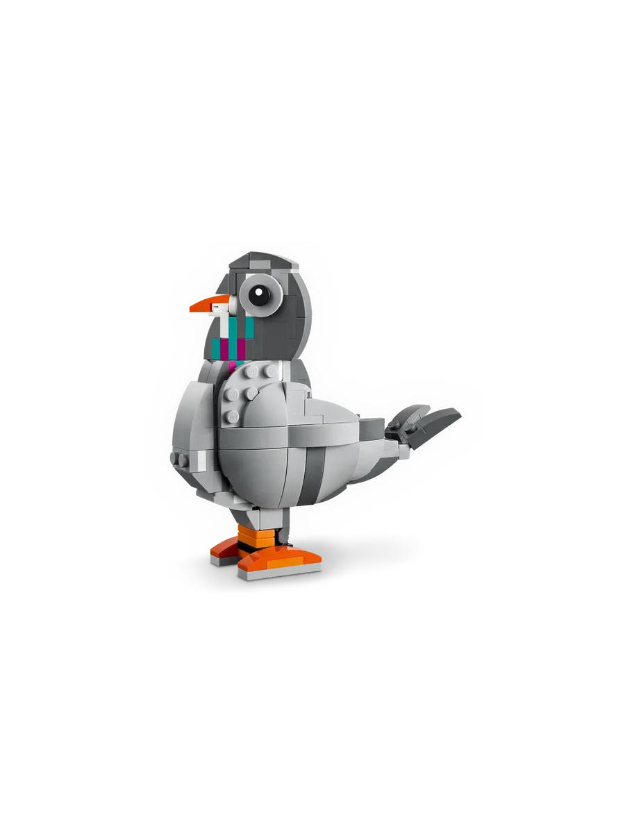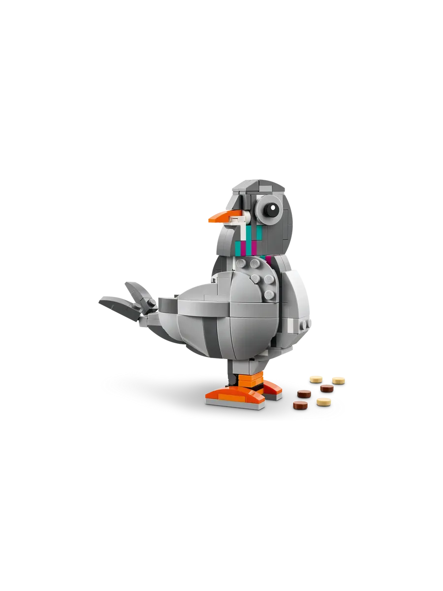 Когда котик насытится и захочет отдохнуть, его легко можно перестроить в дружелюбного щенка с косточкой или забавного голубя, который весело клюёт хлебные крошки. Детям понравится придумывать новые сюжеты, перестраивая модели снова и снова — ведь в одной коробке целых три питомца!