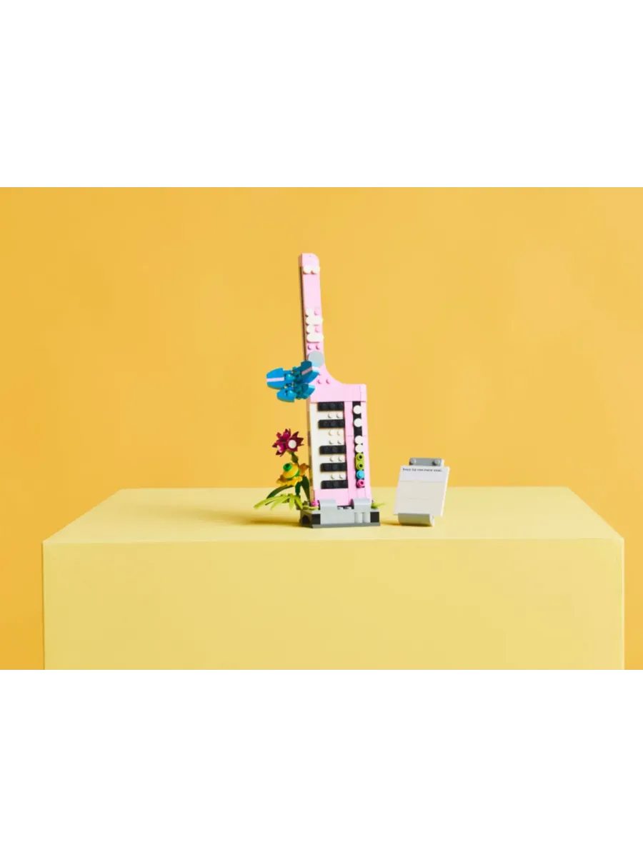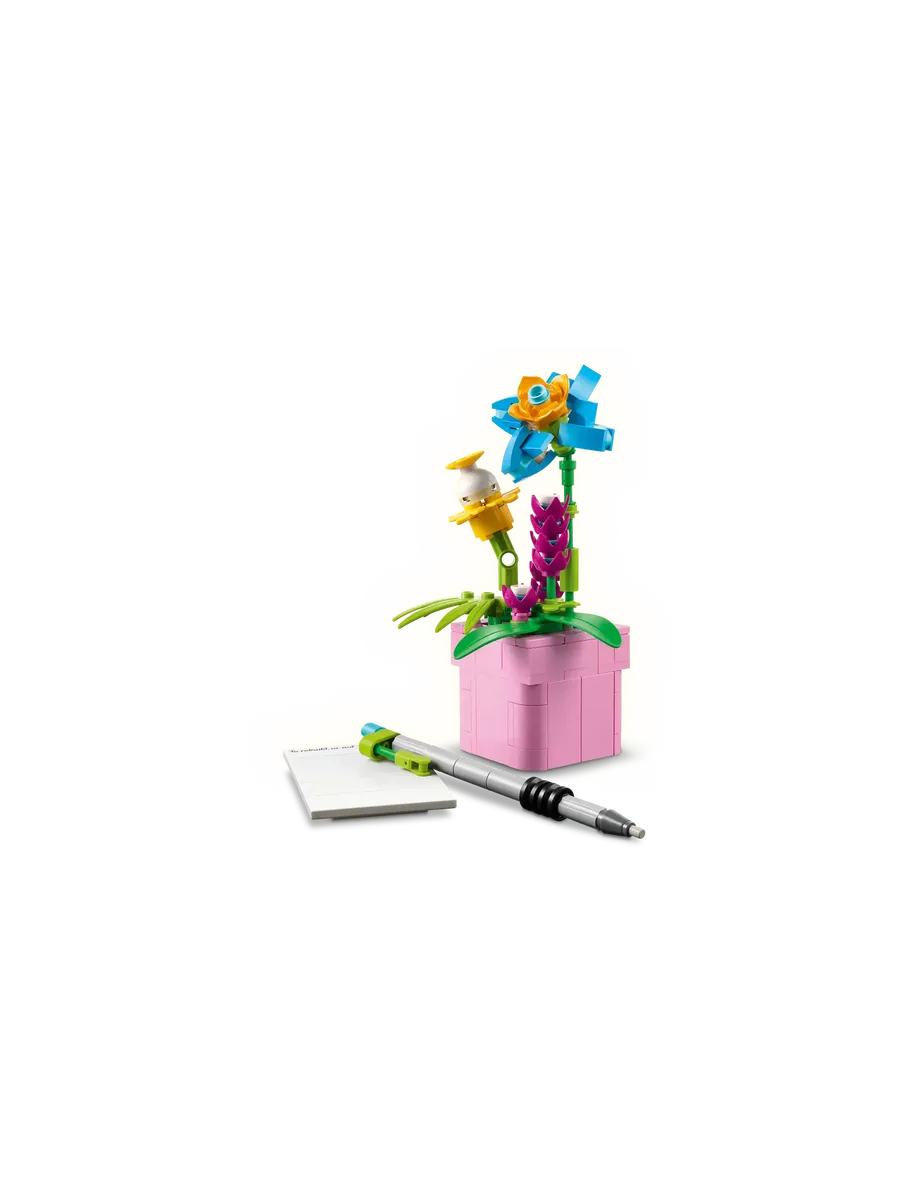 Собрав машинку, не останавливайтесь на достигнутом! Перестройте её в музыкальную клавитару с цветами на подставке или создайте очаровательный цветочный горшок с ручкой и блокнотом для записей. Три варианта сборки — это три разных идеи для яркого декора и увлекательной игры.