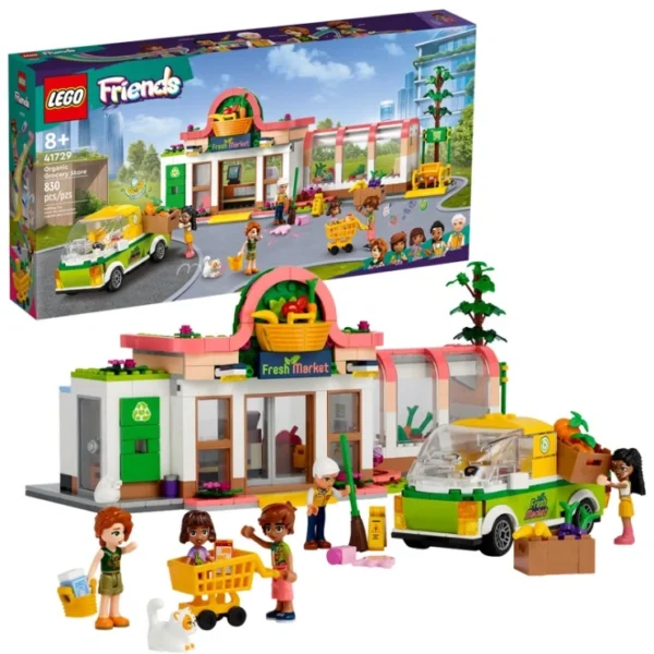 В комплекте с игрушечными аксессуарами из продуктового магазина, которые дети могут использовать для изучения интересов персонажей. В набор входят 4 мини-куклы – В игрушечный продуктовый магазин входят мини-куклы LEGO Friends Лео, Отэм, Джордин и Айзек, а также младшая сестра Альба и персонажи кошки Чурро.