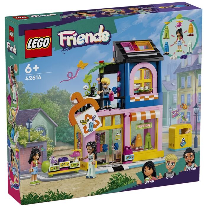 Вдохновите юных строителей думать о планете, увлекаясь модой, с помощью этой социально-эмоциональной игрушки. В магазине винтажной моды LEGO Friends (42614) для детей, девочек и мальчиков в возрасте от 6 лет представлены 3 персонажа LEGO Friends, фигурка кошки и аксессуары.Эта детская игрушка позволяет творческим девочкам и мальчикам рассказать историю Олли, Лианн и Джордин, которые любят шить новые наряды из старой одежды. Дети могут помочь персонажам постирать и переработать подаренную одежду в мастерской. Там есть раздевалка, где друзья могут примерить наряды, а также множество одежды, которую могут носить мини-куклы, включая шляпы, брюки, пару туфель и сумки-бумбэги. В комплект аксессуаров также входят моющее средство, измерительная лента, аэрозольная краска и кассовый аппарат.Количество деталей: 409Размер упаковки в мм: 282 x 262 x 59
