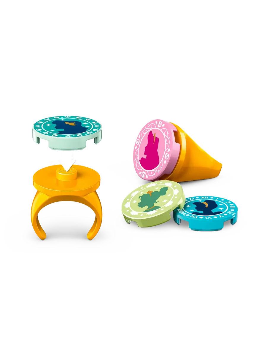 Встречайте очаровательных принцесс — Тиану, Аврору, Золушку и Ариэль, каждая из которых готова к новым приключениям. В набор также входят два коллекционных кольца с четырьмя сменными украшениями — дети смогут создавать собственные волшебные аксессуары.
