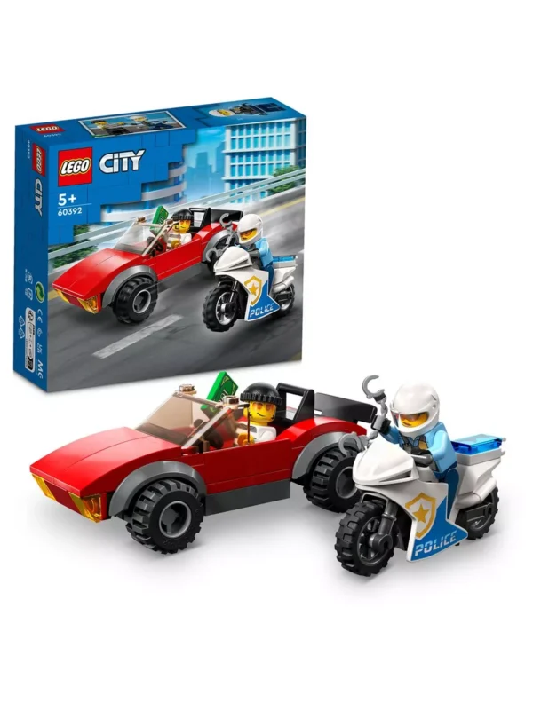 Этот оригинальный набор LEGO City (60392) предлагает детям от 5 лет почувствовать себя участниками захватывающей полицейской погони. Здесь вас ждет напряженная погоня за преступником, который пытается скрыться на спортивном автомобиле. Но храбрый полицейский на быстром мотоцикле уже мчится за ним, чтобы вернуть похищенные деньги!