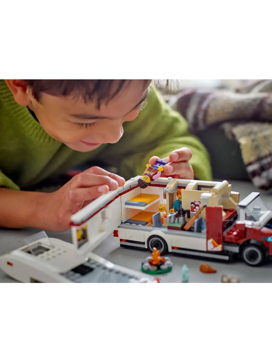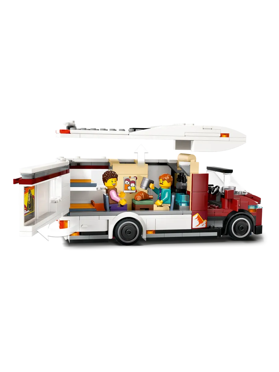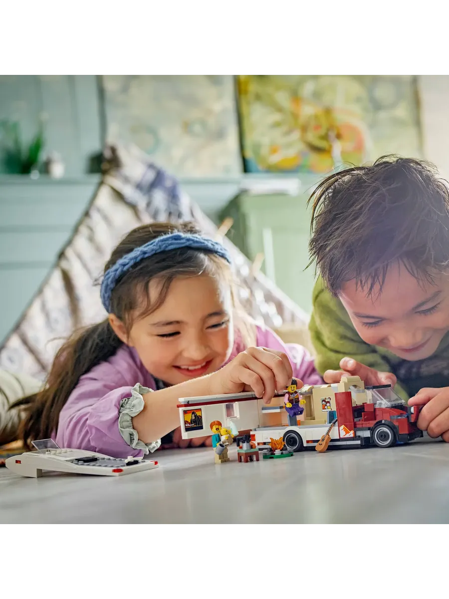 Готовы отправиться в путешествие мечты? С набором LEGO City «Приключения в доме на колесах» ваш ребенок сможет придумать свою идеальную поездку — будь то отдых на солнечном побережье или уединение в горах.
