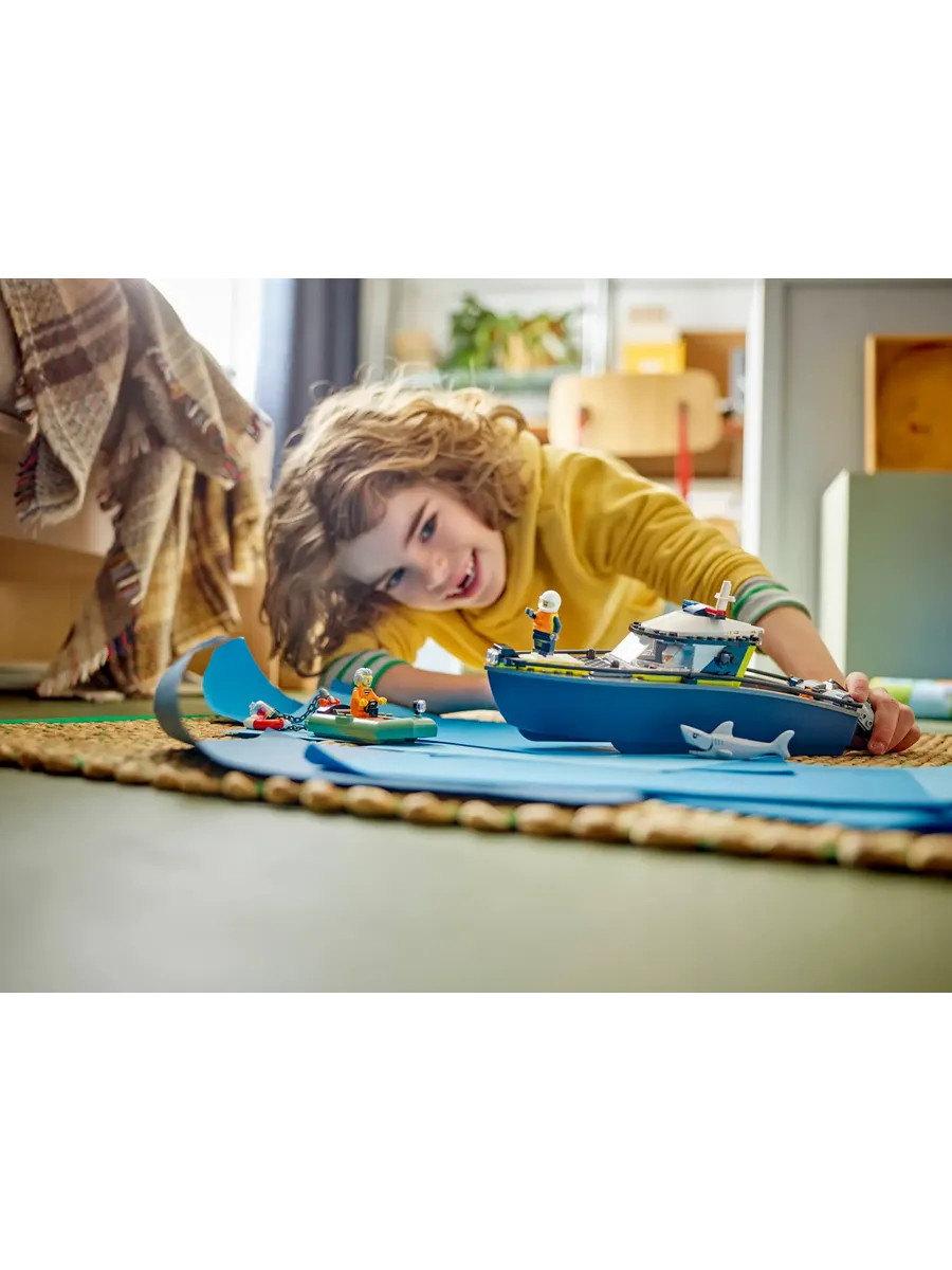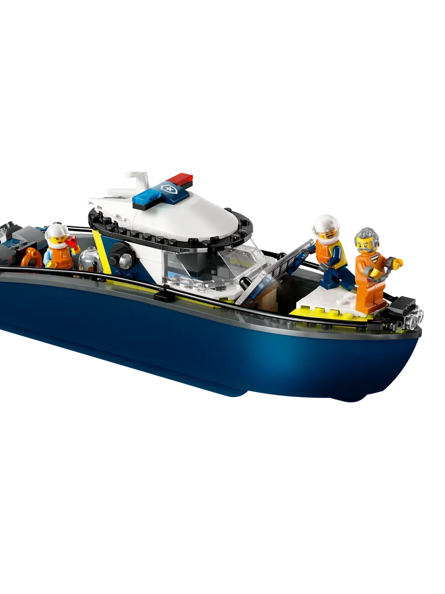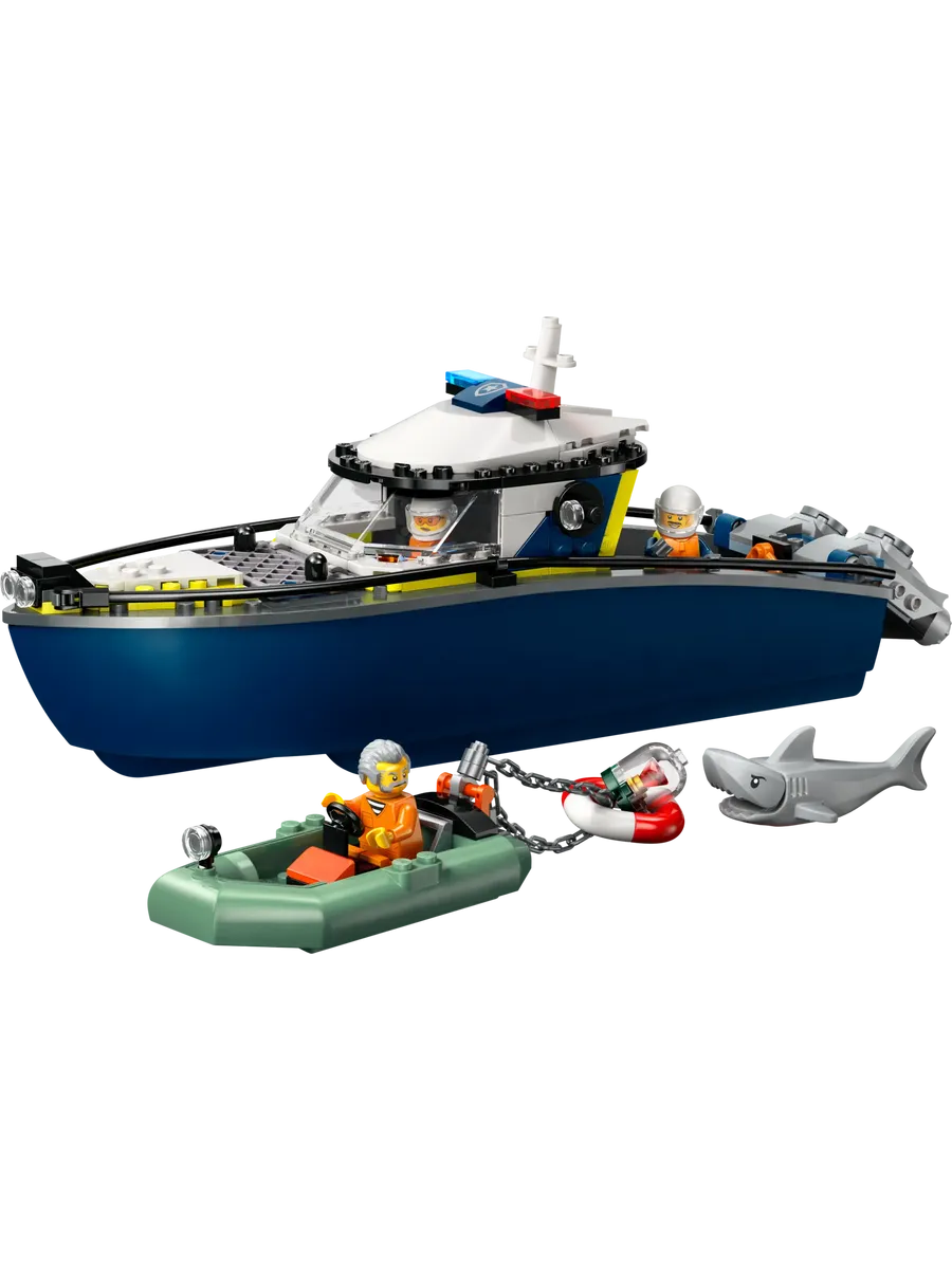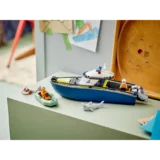 Новинка июня 2025 года LEGO приглашает юных героев с 6 лет отправиться в водное патрулирование. Отважные офицеры преследуют грабителя, сбежавшего на моторной лодке с украденным рубином. В наборе — всё для яркой и динамичной игры: мощный полицейский катер с двумя моторами и тюремной камерой, быстроходный катер преступника, минифигурки полицейских, грабителя и даже акулы, готовой внести неожиданный поворот в сюжет.