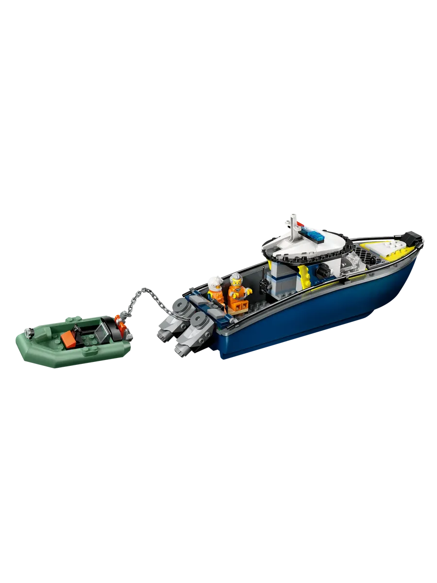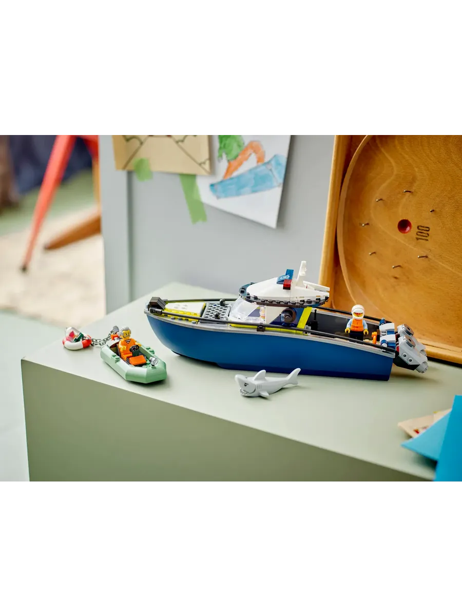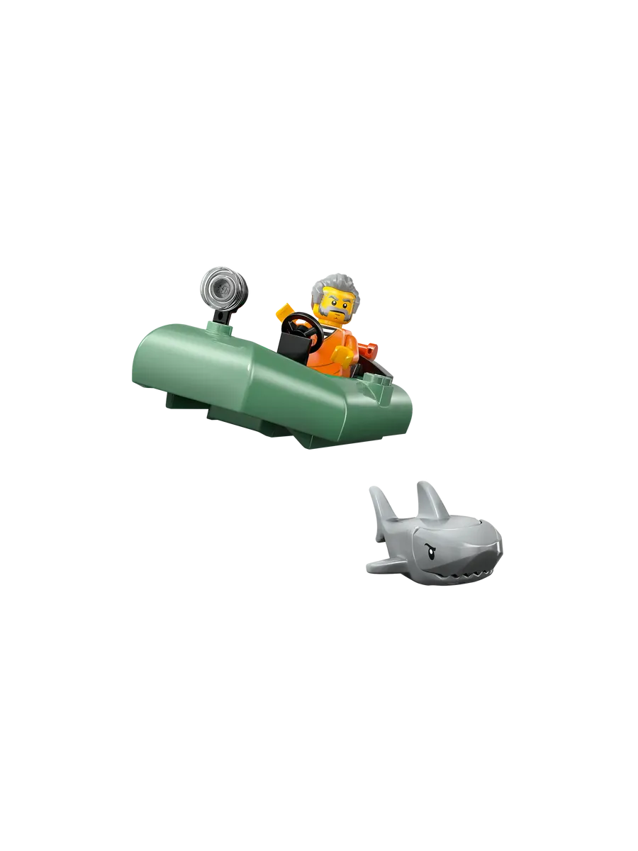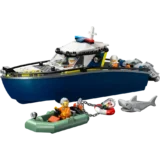 Новинка июня 2025 года LEGO приглашает юных героев с 6 лет отправиться в водное патрулирование. Отважные офицеры преследуют грабителя, сбежавшего на моторной лодке с украденным рубином. В наборе — всё для яркой и динамичной игры: мощный полицейский катер с двумя моторами и тюремной камерой, быстроходный катер преступника, минифигурки полицейских, грабителя и даже акулы, готовой внести неожиданный поворот в сюжет.