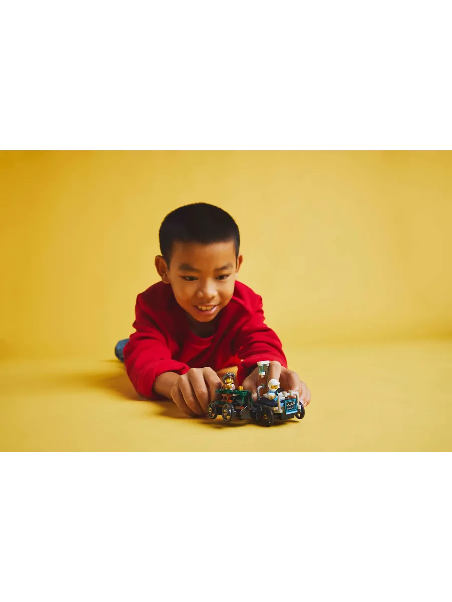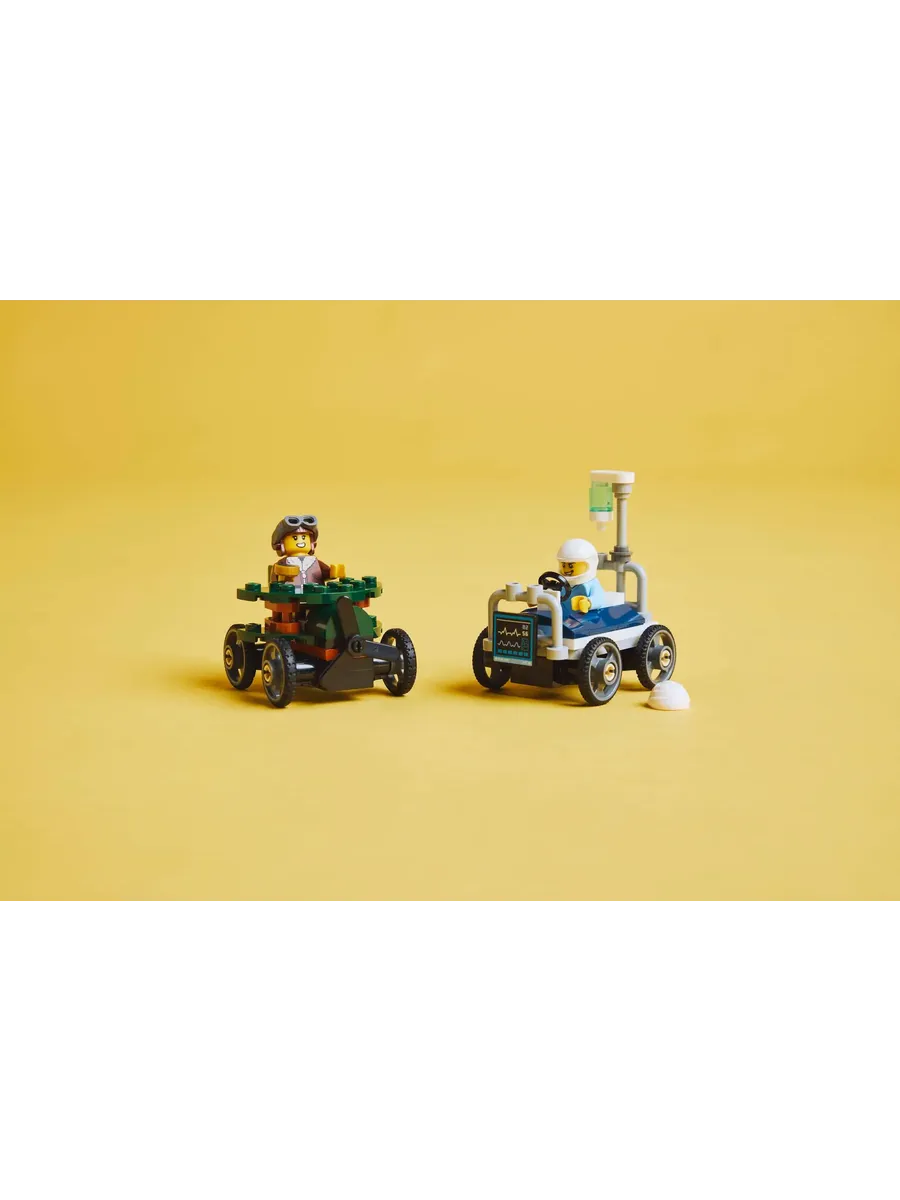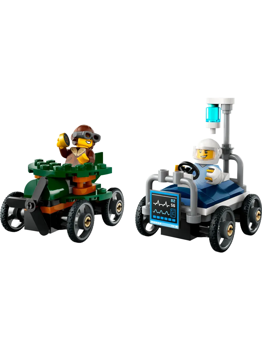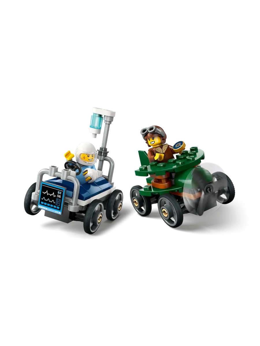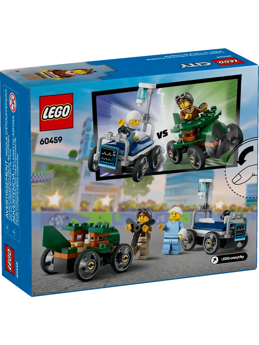 Набор включает две уникальные машинки и две минифигурки пилота и пациента. Дети смогут с легкостью разместить гонщиков за рулем и отправить их навстречу безумным городским приключениям, придумывая собственные истории и развивая воображение.
