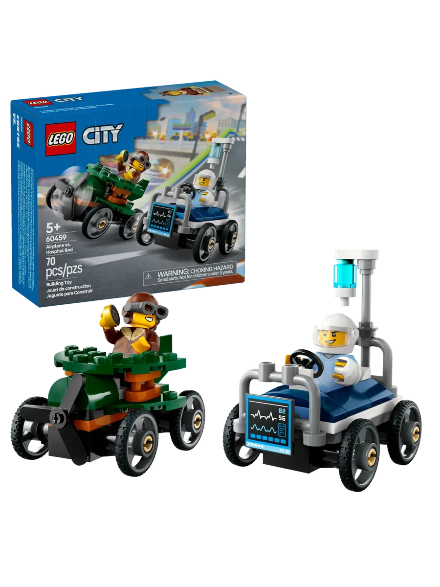 Приготовьтесь к самым забавным заездам года с набором LEGO City «Самолет против кровати»! Этот оригинальный комплект для детей от 5 лет приглашает устроить эпичную гонку между летчицей на стремительном самолете и пациентом на сверхбыстрой больничной кровати. Кто первым пересечет финишную черту? Настало время занять место на старте и узнать!