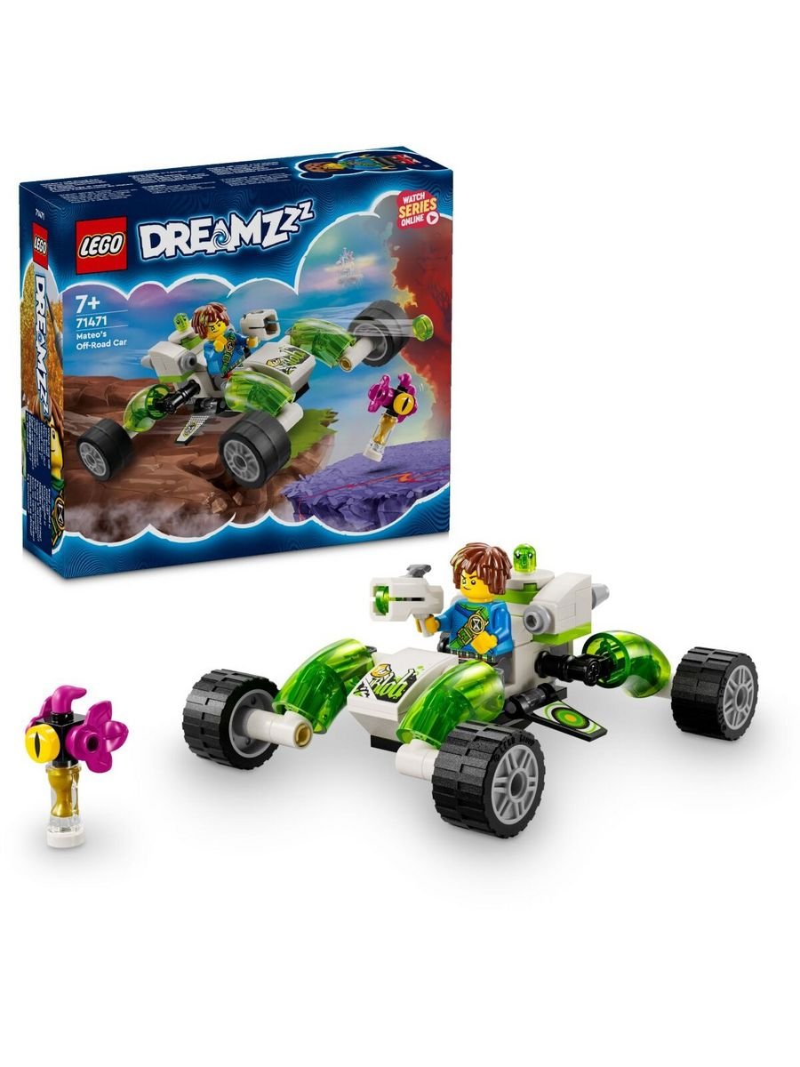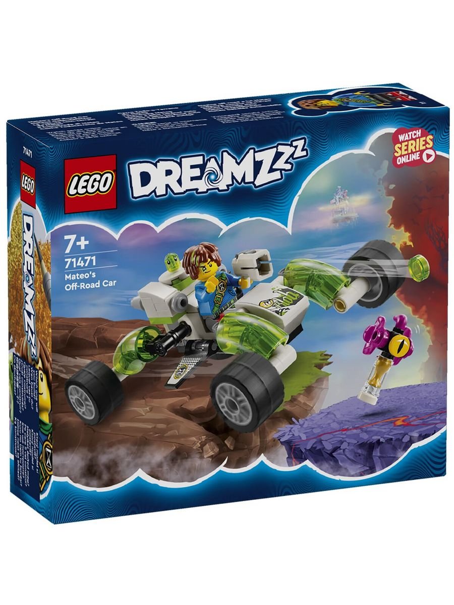 Артикул:71471 Дети в возрасте от 7 лет могут окунуться в удивительный мир LEGO® DREAMZzz™ с игрушечной внедорожной машиной Матео (71471). В нем также представлены фигурки Гримспауна и липкого приятеля Матео Z-Blob, так что дети могут проявить творческий подход и создать приключение своей мечты.Количество деталей: 94Размер упаковки в мм: 157 x 141 x 45