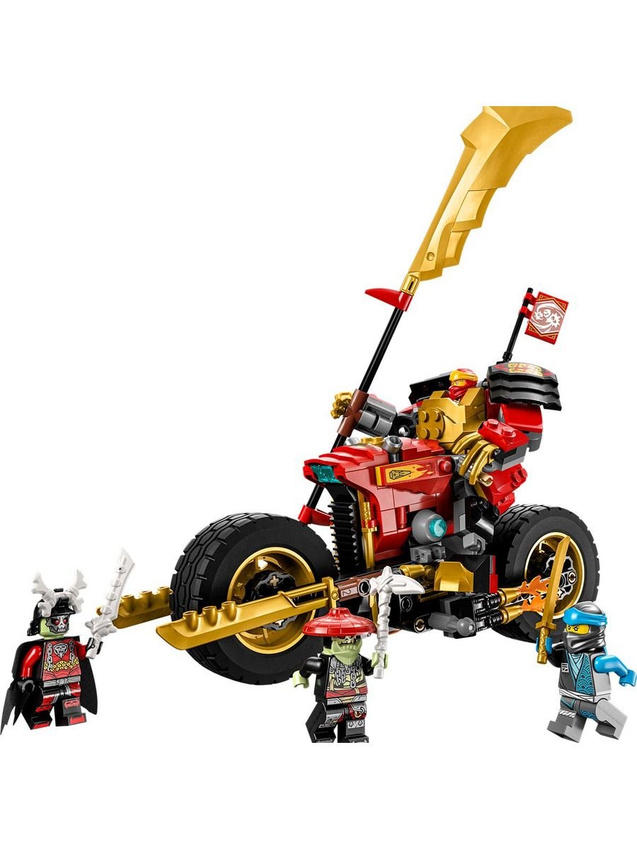Маленькие строители в возрасте от 7 лет и любители крутых транспортных средств могут устроить свои собственные фэнтезийные разборки между добром и злом с помощью этого остросюжетного игрового набора Kai Mech Rider EVO (71783). В нем представлены доступный робот и крутой мотоцикл, который можно модернизировать до более крупной модели, добавив золотые боковые панели и большое золотое лезвие. 4 минифигурки – игровой набор включает в себя 2 ниндзя-воина, Кая и Нья, вооруженных мечами, и 2 злодея, Костяного короля и Костяного Охотника, вооруженных их собственным оружием.Эта игрушка из 312 предметов.Размер игрушки (10 см) в высоту, (25 см) в длину и (9 см) в ширину.