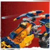 Желтый внедорожник Арина выглядит эффектно и готов к бою. Его кабина открывается, и внутри найдется место сразу для двух минифигурок — чтобы друзья могли мчаться в бой вместе. Сзади крепится большой крюк — им удобно ловить врагов на ходу. А впереди установлены две мощные шипометы, заряженные шипами — ни один злодей не уйдет от ниндзя!