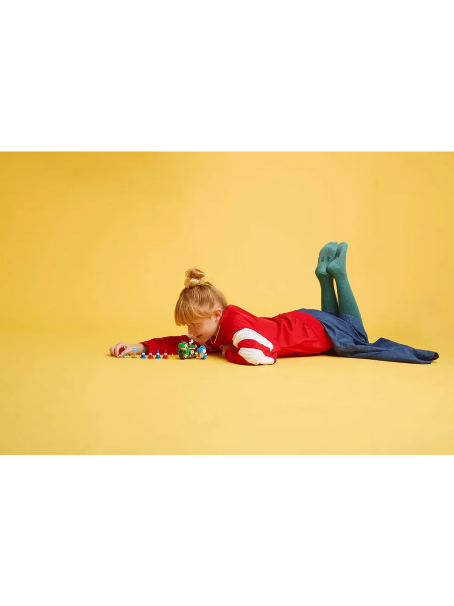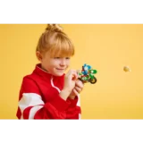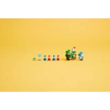 Постройте йошицикл из кубиков и помогите голубому Йоши проскочить между четырьмя дорожными конусами, увернуться от банана и запустить панцирь с мотоцикла. Если у вас есть фигурки LEGO Марио, Луиджи или Пич (из наборов 71439, 71440 или 71441, продаются отдельно), катайтесь на мотоцикле вместе с ними, активируя крутые звуковые эффекты старта, гудков, дрифта и полета. В комплекте также есть ящик предметов, который выдает случайные цифровые бонусы для ещё более увлекательной гонки.