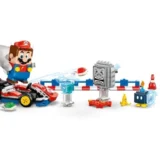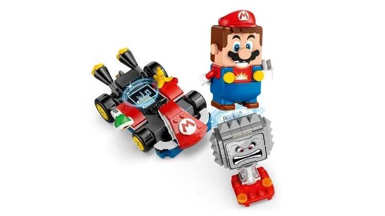 В комплект входят также фигурки Боб-омба и Твомпа, а также банан с забавным лицом, которые добавляют вызовы и веселье в гонки. Управляя картом LEGO Mario, дети могут активировать звуковые и визуальные эффекты, собирать цифровые награды и реагировать на зелёные и красные LEGO пластины на трассе.