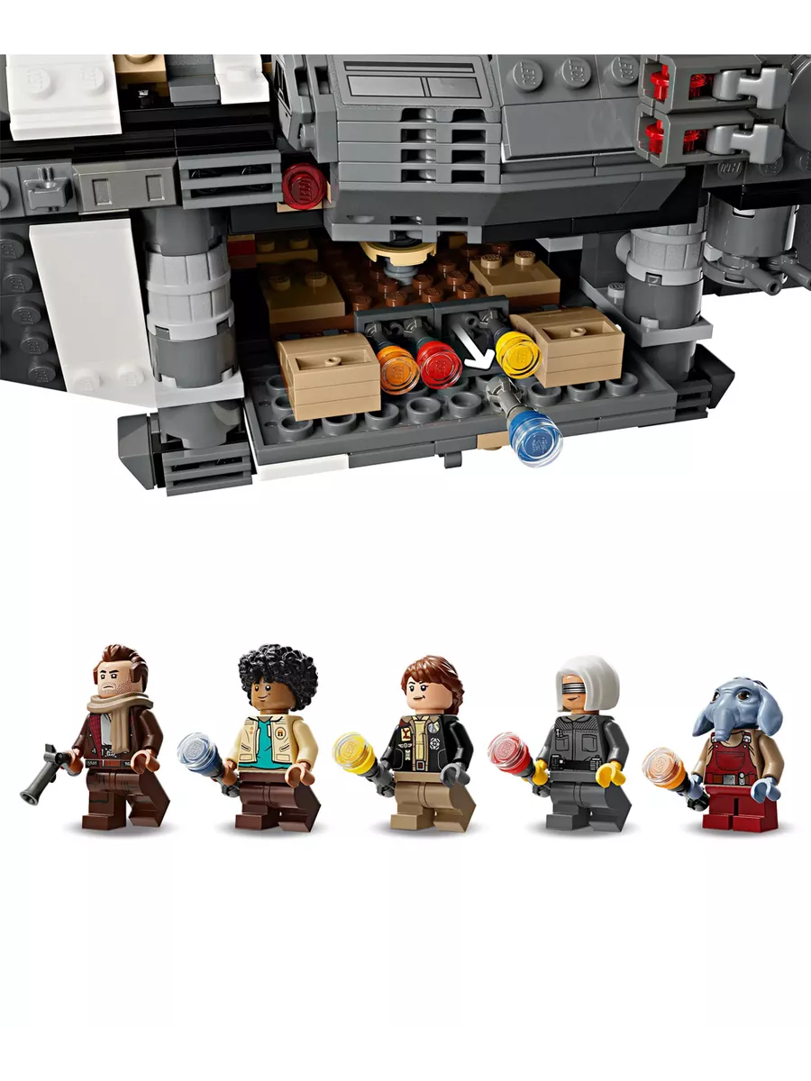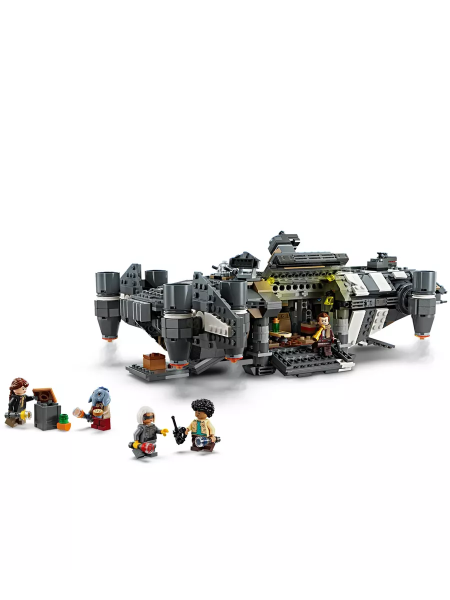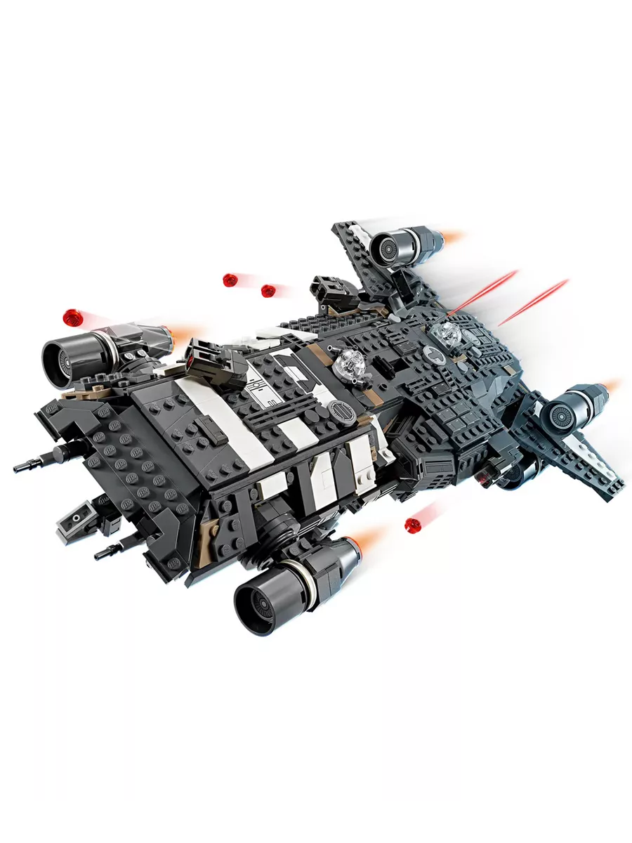 Погружайтесь в захватывающий мир Звездных Войн с моделью космического корабля “The Onyx Cinder”. Этот конструктор позволяет детям стать героями собственных приключений в стиле Звездных Войн. В набор входят вращающиеся двигатели для посадки и взлета, 2 стрелковых устройства, 2 вращающиеся турели, каждая с 2 стрелковыми устройствами, и захватный механизм. Внутри есть места для всех 5 минифигурок LEGO Звездных Войн (Jod в кабине и Wim, Fern, KB и Neel в пассажирском отсеке), а также хранилище для 4 сборных фонариков и другого груза. Кроме того, в наборе есть кухонный стол и кровать, а также аксессуары, такие как фрукты и рация, чтобы вдохновить на творческую игру.