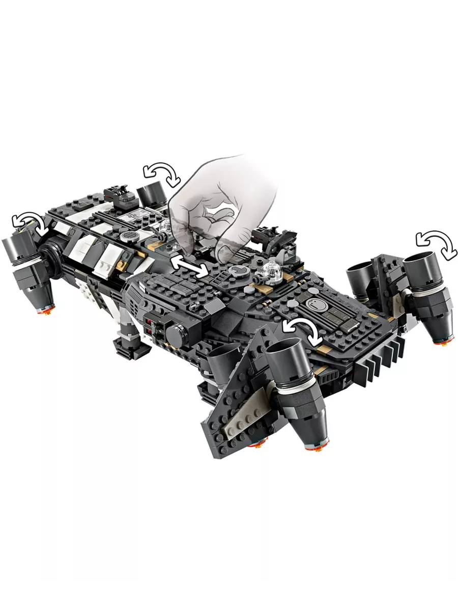 Аутентичные особенности – Кабина, отсек с местами для 4 минифигурок, вращающиеся двигатели для посадки/взлета или полета, 2 стрелковых устройства и 2 вращающиеся турели с 2 стрелковыми устройствами.