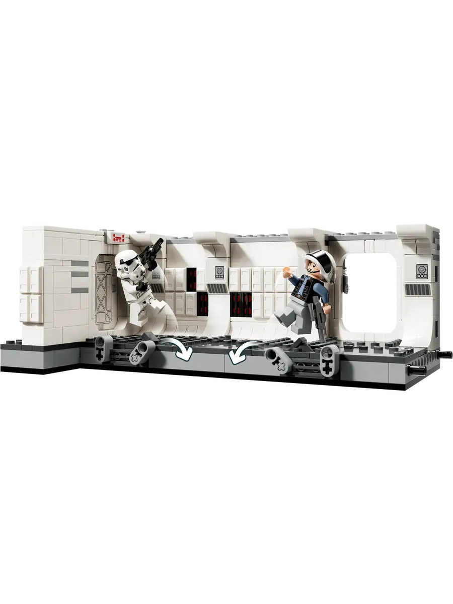 Где-то, в далекой, далекой галактике…Воссоздайте захват Тантива IV Дартом Вейдером в начале фильма «Звездные войны: Новая надежда» с помощью этой коллекционной игрушки разыграйте захватывающую бластерную битву между штурмовиками Дарта Вейдера и солдатами повстанческого флота генерала Антиллеса.