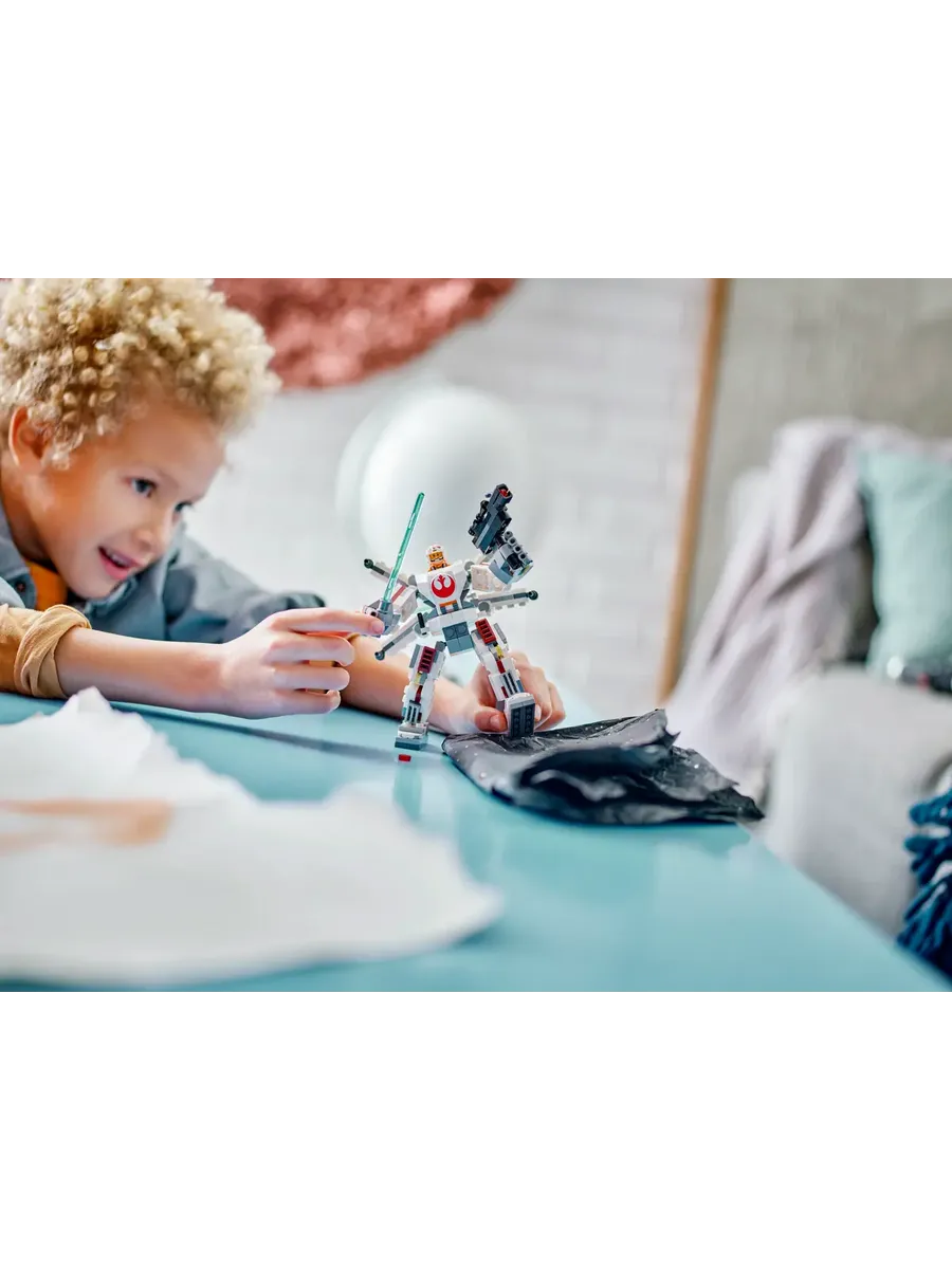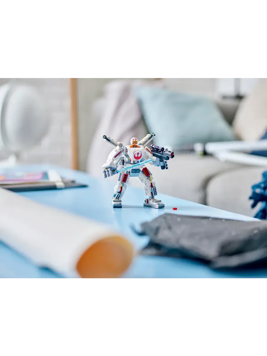 Робот оснащён открывающейся кабиной, куда помещается минифигурка Люка Скайуокера, регулируемым реактивным ранцем с крыльями типа X и креплением для светового меча. Руки робота подвижны и могут удерживать увеличенную версию легендарного светового меча и большой бластер, стреляющий шипами — всё для зрелищных боевых миссий. Высота модели — 13 см, она отлично подходит и для игры, и для размещения на полке между приключениями.