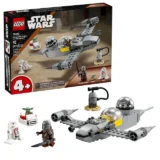 В набор входит звёздный истребитель N-1 с модулем для быстрого старта, что делает сборку ещё проще и доступнее. Открывающаяся кабина позволяет поместить минифигурку Мандалорца, а для Грогу предусмотрено пассажирское место в задней части звездолёта. Также в комплекте есть заправочная станция, добавляющая реалистичности игровому процессу.