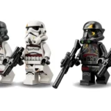 В наборе четыре минифигурки — два штурмовика «Звезды Смерти» и два ночных штурмовика, у каждого есть шлем и бластер, который можно закрепить рядом с фигуркой в дропшипе, чтобы быть готовыми к боям и приключениям.