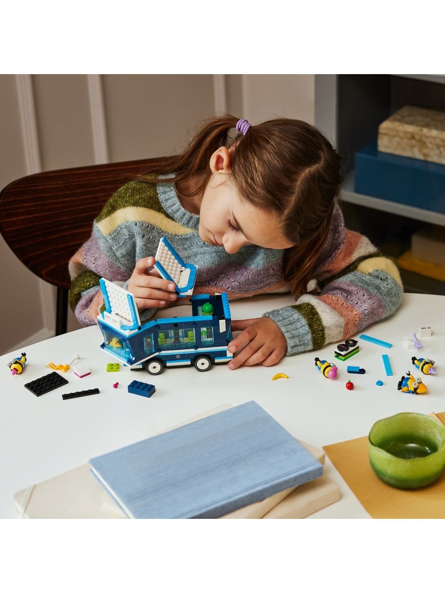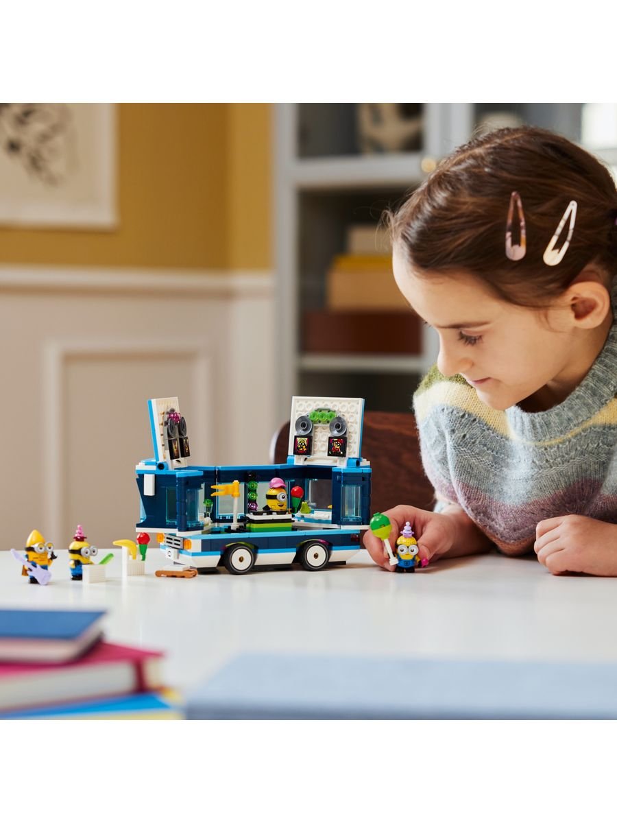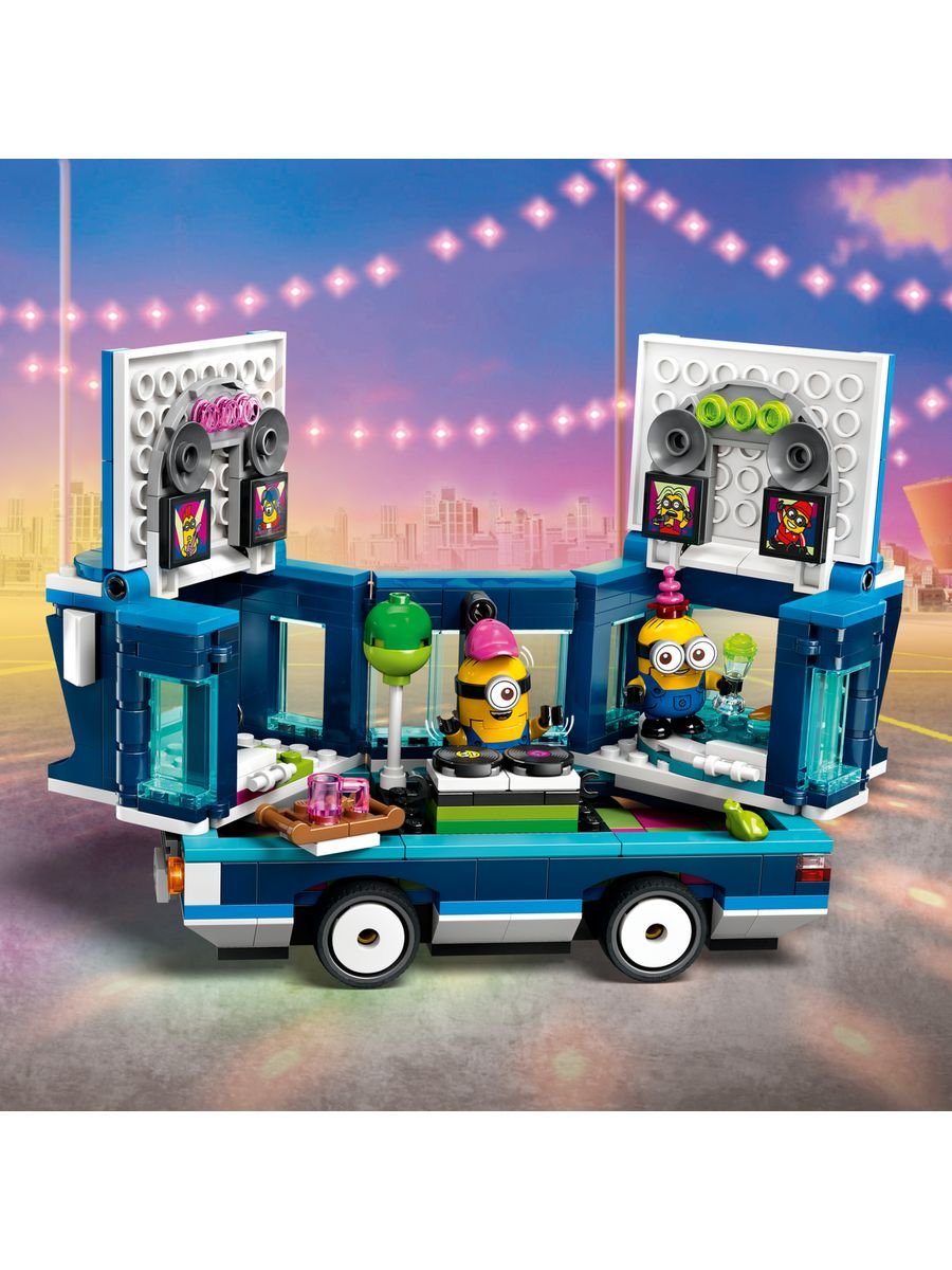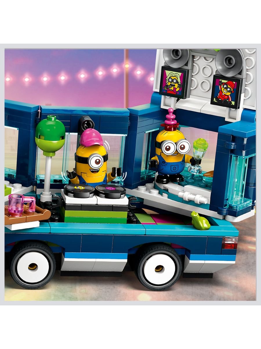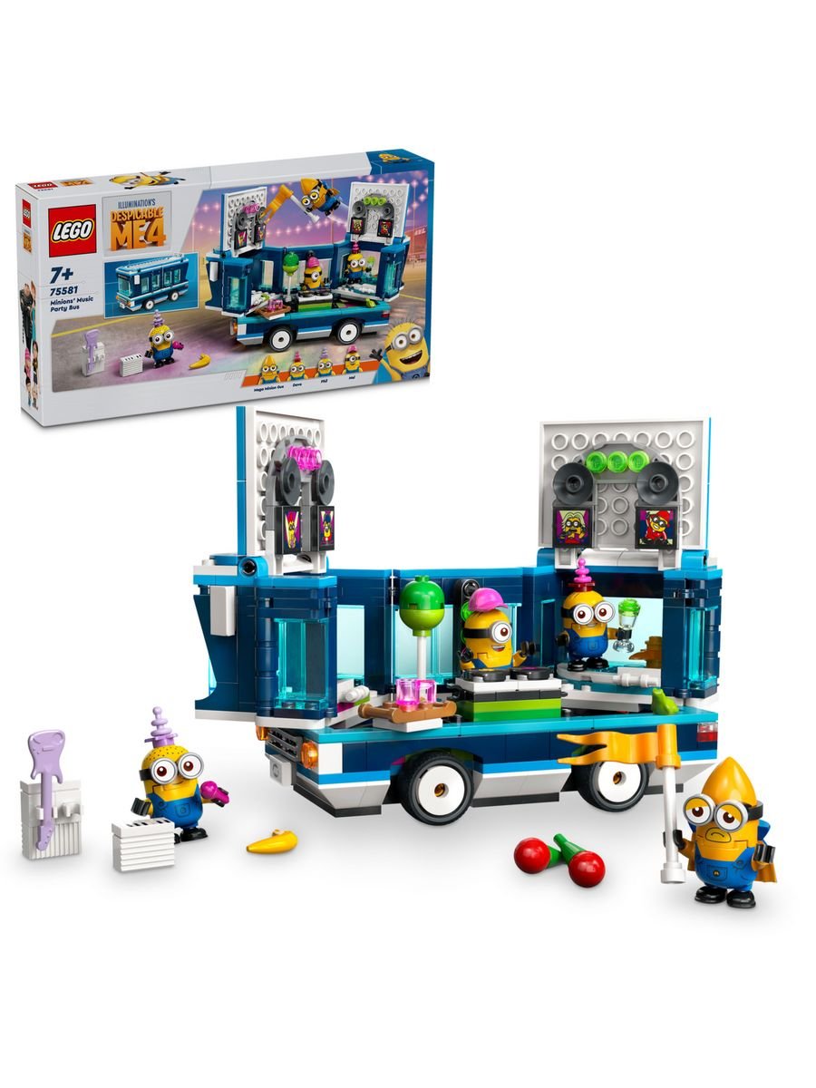 Присоединяйся к шумной компании миньонов и отправляйся на самую безумную вечеринку в ярком музыкальном автобусе из мультфильма «Гадкий я 4»! Этот оригинальный набор LEGO позволяет детям от 7 лет создать свой собственный праздничный транспорт и устроить грандиозное шоу прямо у себя дома.