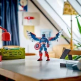 Передайте действие фильмов Marvel в руки юных супергероев с помощью детализированной, полностью шарнирной фигурки «Новый Капитан Америка» LEGO Marvel (76296) для детей от 8 лет и старше. В этом воплощении суперсолдата Marvel крылатый Сокол берет на себя роль Капитана Америки, привнося дополнительное измерение в игровой процесс детей. Сборная игрушка-супергерой имеет высоту более 11 дюймов (28 см) и подвижные плечевые суставы, руки, бедра и ноги, что позволяет детям принимать реалистичные позы, погружаясь в творческую ролевую игру. К спине фигурки прикрепляются большие крылья из фольги. Крылья можно согнуть, чтобы имитировать взмахи, и легко снять, когда действие вернется на землю. Фигурка Капитана Америки несет свой знаменитый щит, а к его спине прикреплен сборный игрушечный дрон Redwing, который дети могут легко отсоединить для самостоятельной игры. Для большего цифрового удовольствия строители могут увеличивать масштаб, вращать наборы в 3D и отслеживать прогресс с помощью забавного, интуитивно понятного приложения LEGO Builder.