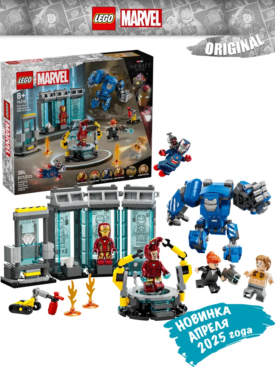 Добро пожаловать в культовую лабораторию Тони Старка с новнкой апреля 2025 года – LEGO ǀ Marvel «Железный человек и зал брони» (76315)! Этот насыщенный деталями игровой набор станет отличным подарком для детей от 8 лет, увлечённых вселенной Marvel, супергеройскими приключениями и сборными конструкторами LEGO.