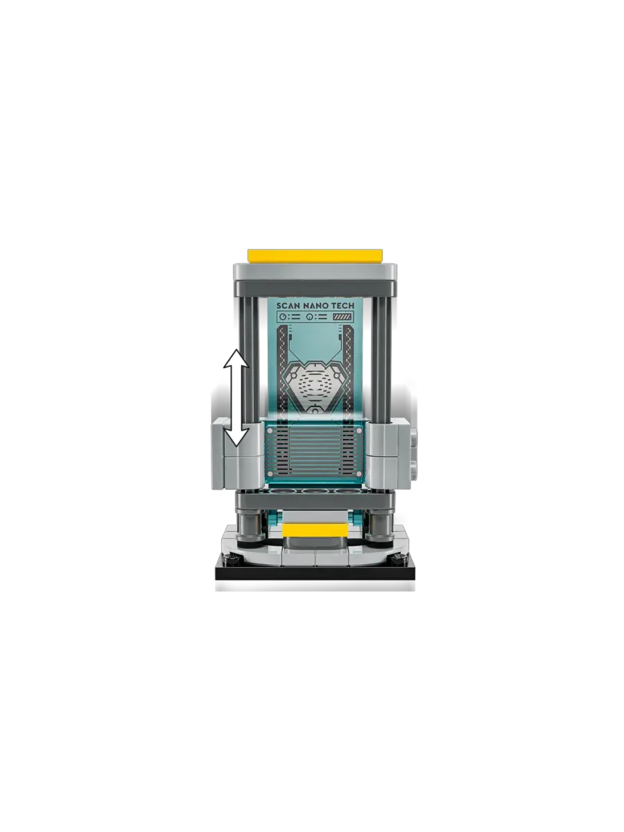 В лаборатории есть техническая платформа с двумя манипуляторами, сканер, огнетушитель, элементы пламени и шипомёты — всё, чтобы разыграть захватывающую супергеройскую сцену. Размер каждого отсека зала брони в собранном виде — более 9 см в высоту, 11 см в ширину и 5 см в глубину.