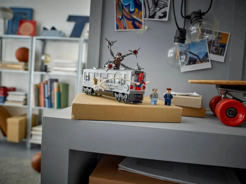 В комплекте — 393 детали, с помощью которых можно построить детализированный поезд метро с открывающейся крышей, предоставляющей доступ к салону и месту для минифигурок-пассажиров. Среди фигурок — Человек-паук с двумя лицами (маска и открытое лицо), Доктор Осьминог с четырьмя подвижными щупальцами, Дж. Джонни Джеймсон — главный редактор газеты, и Тётя Мэй, что добавляет глубину и множество игровых возможностей.